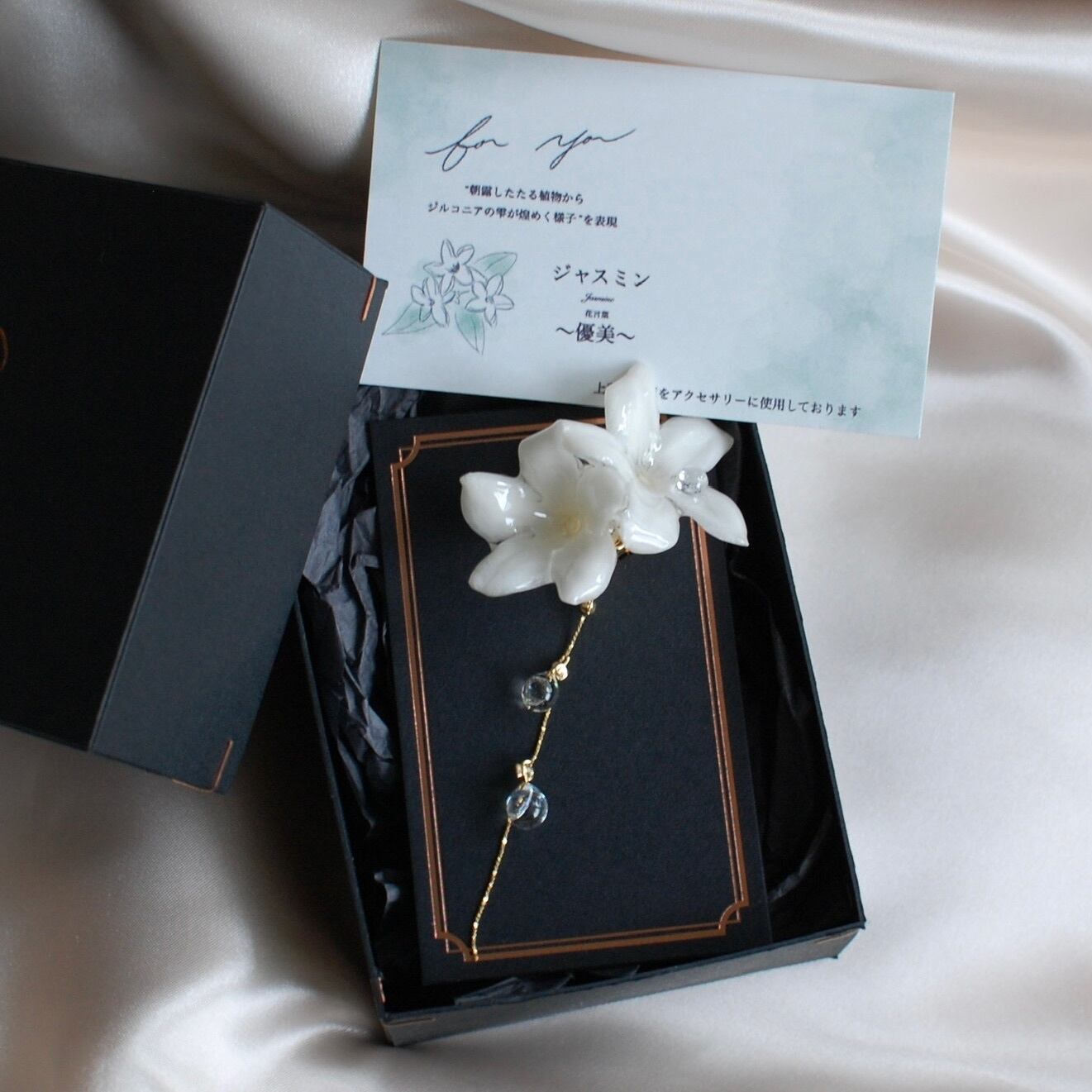 本物のジャスミンをプリザーブドフラワーにして使用しています