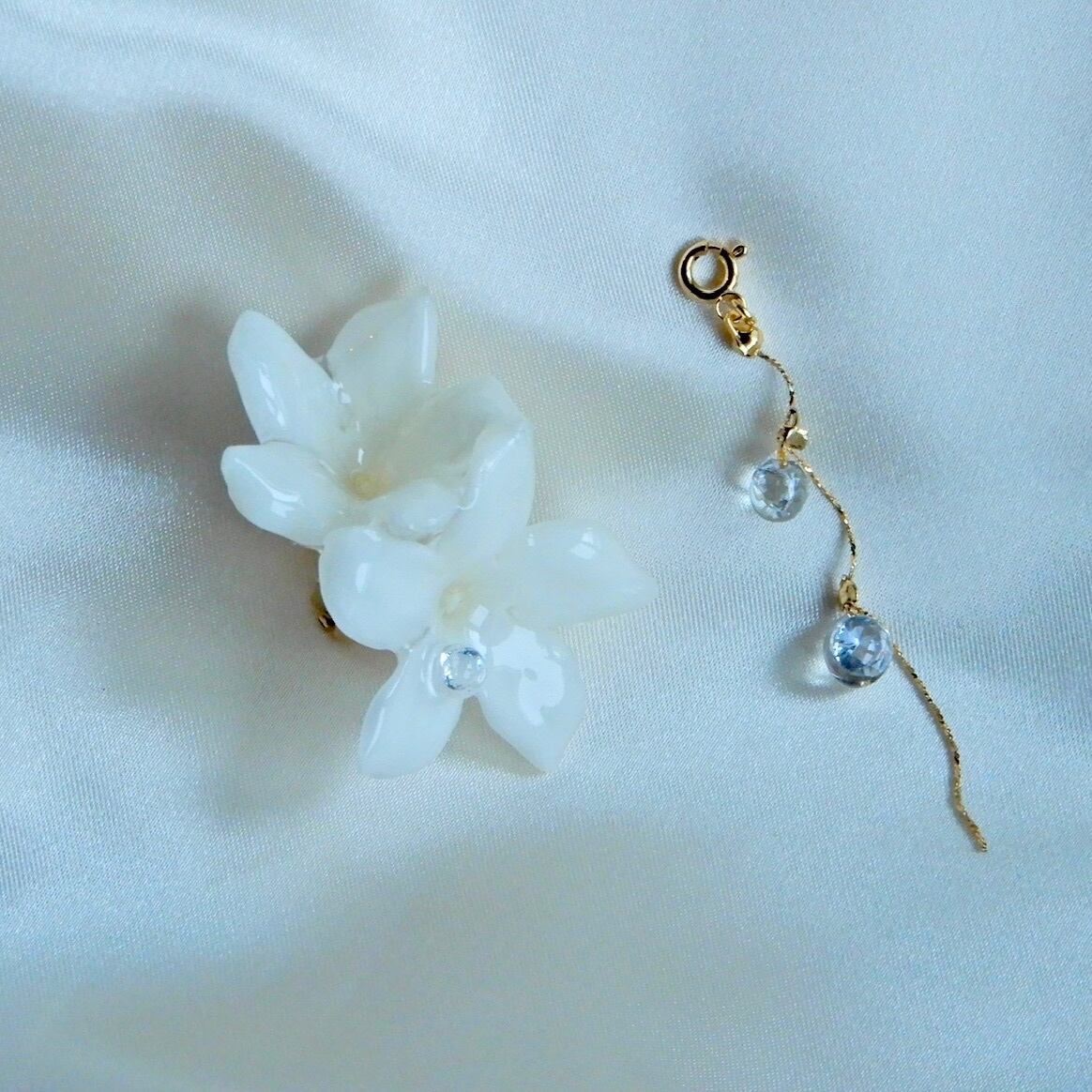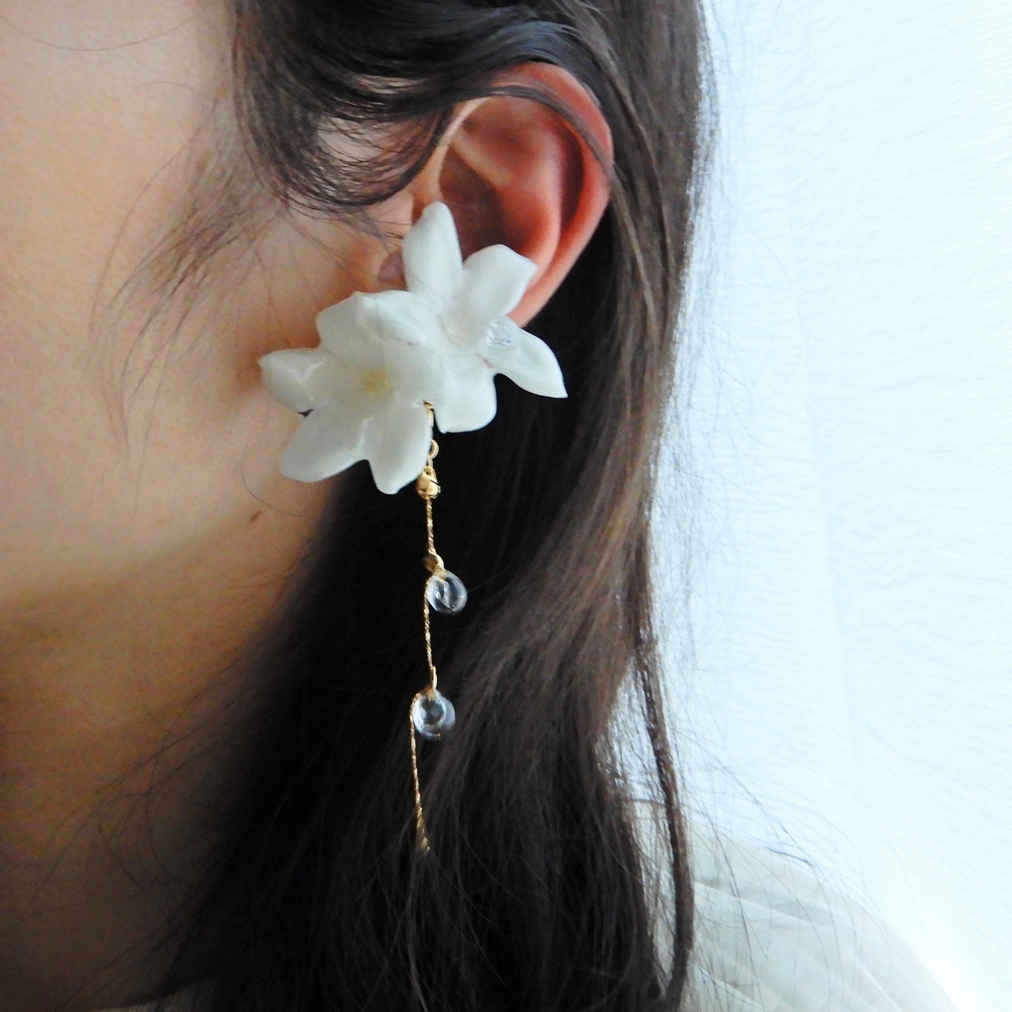 【片耳】雫煌めく2輪のジャスミン✴︎ジルコニアの雫〜2wayイヤーカフ