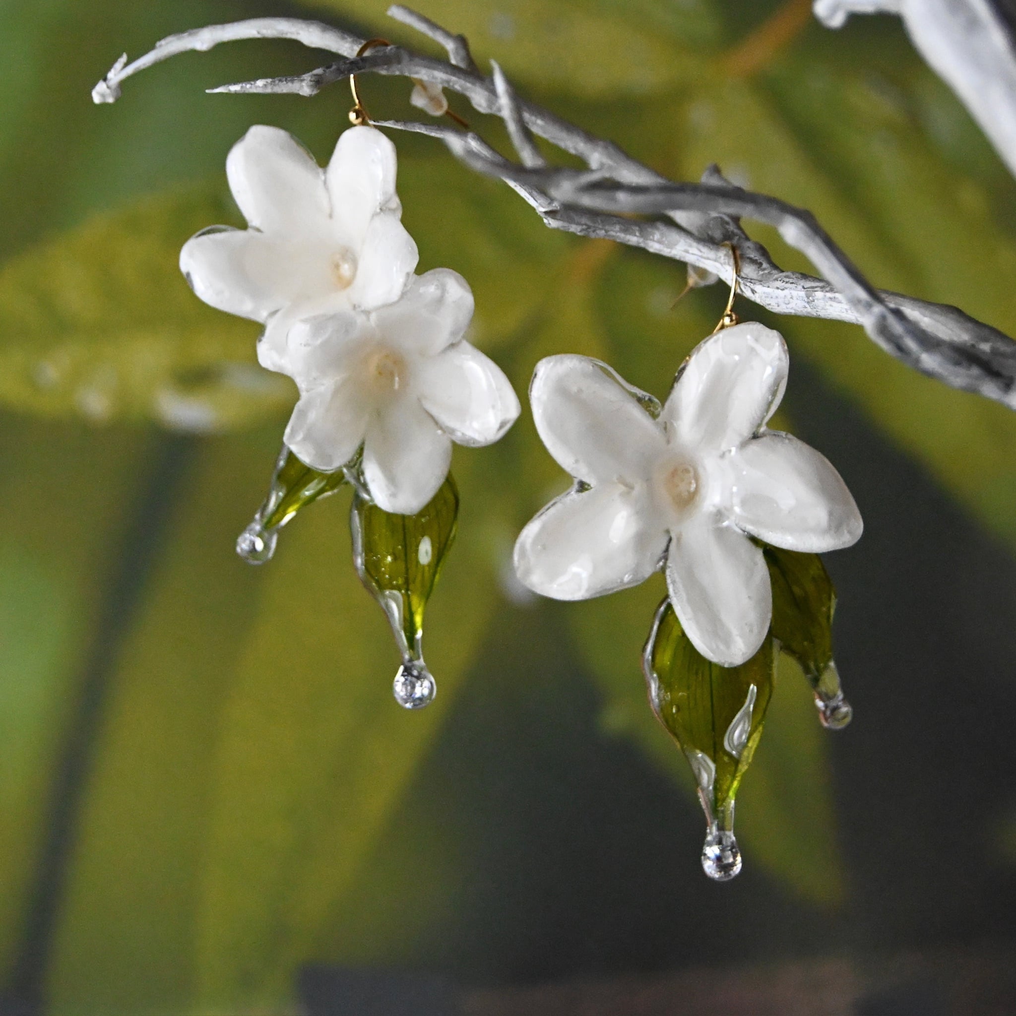 ジャスミンのお花に雫の煌めきを添えた