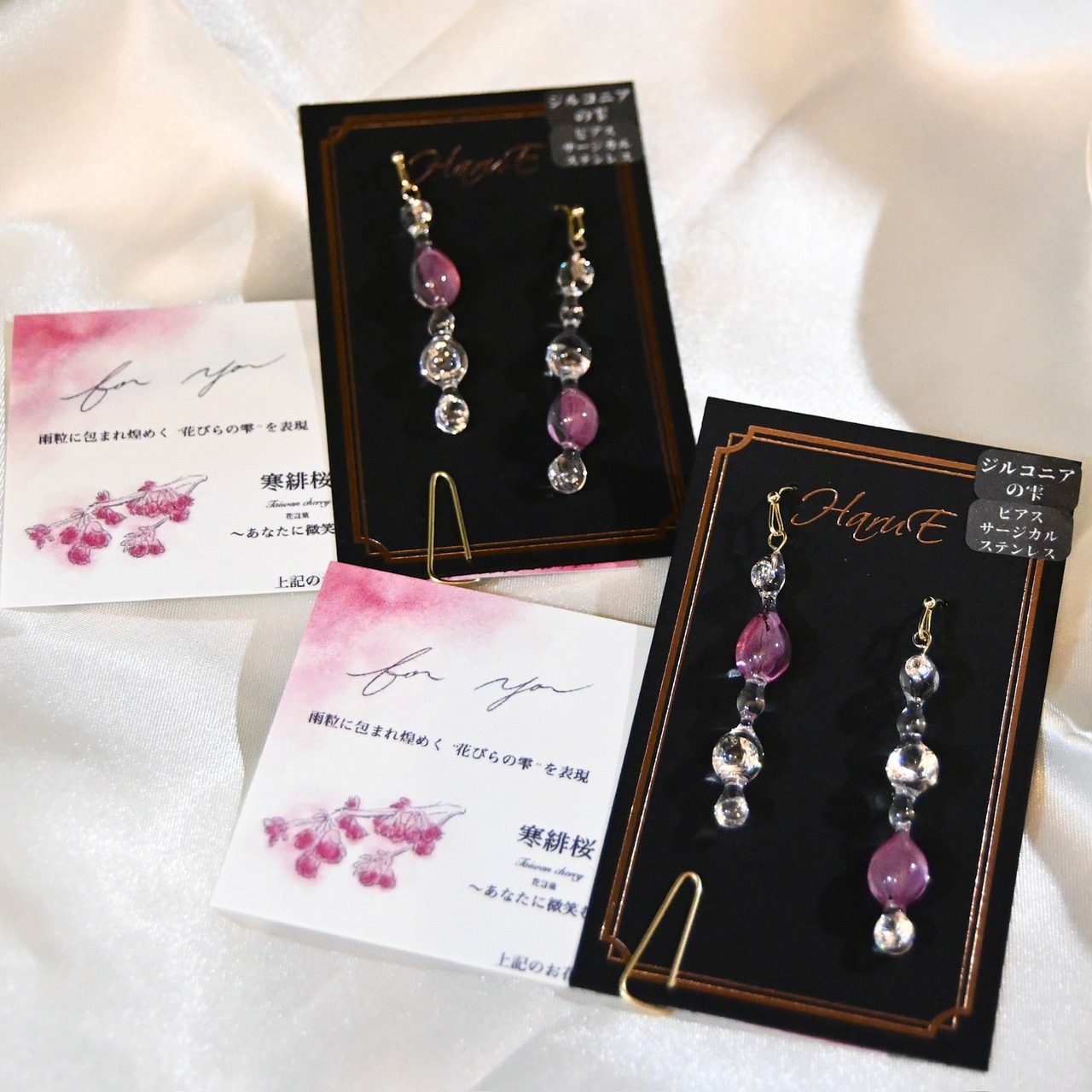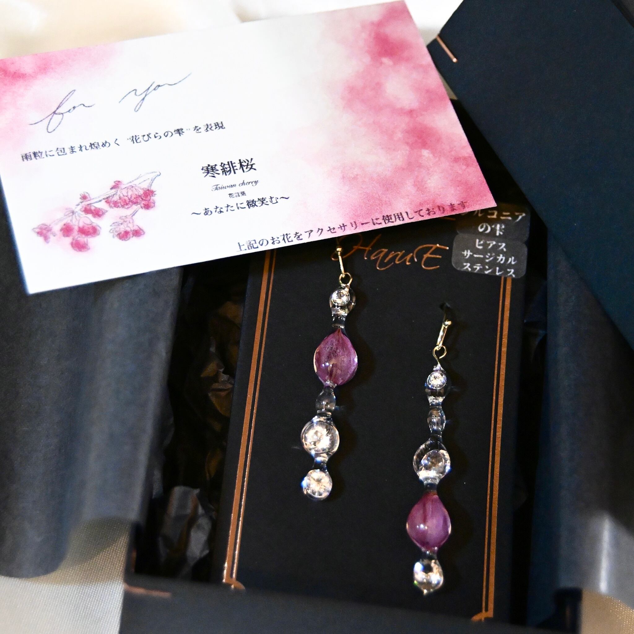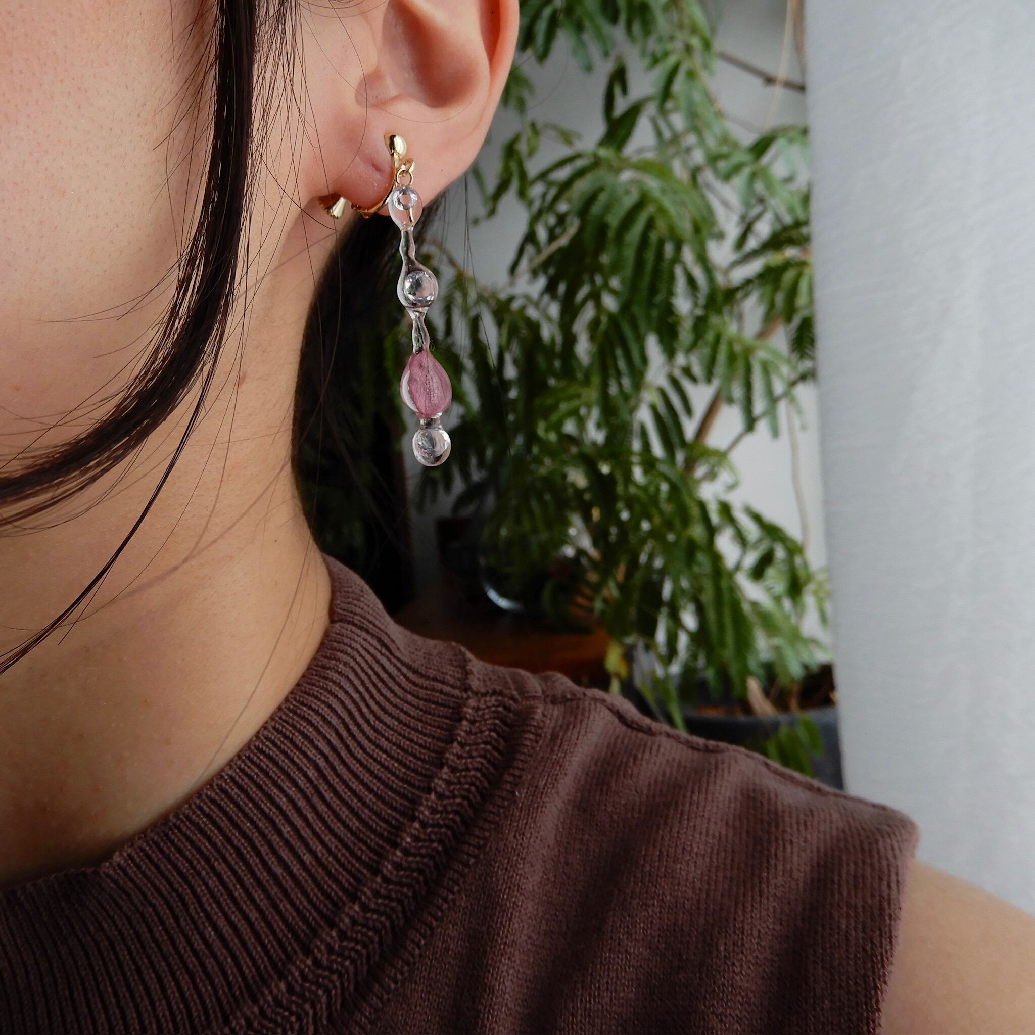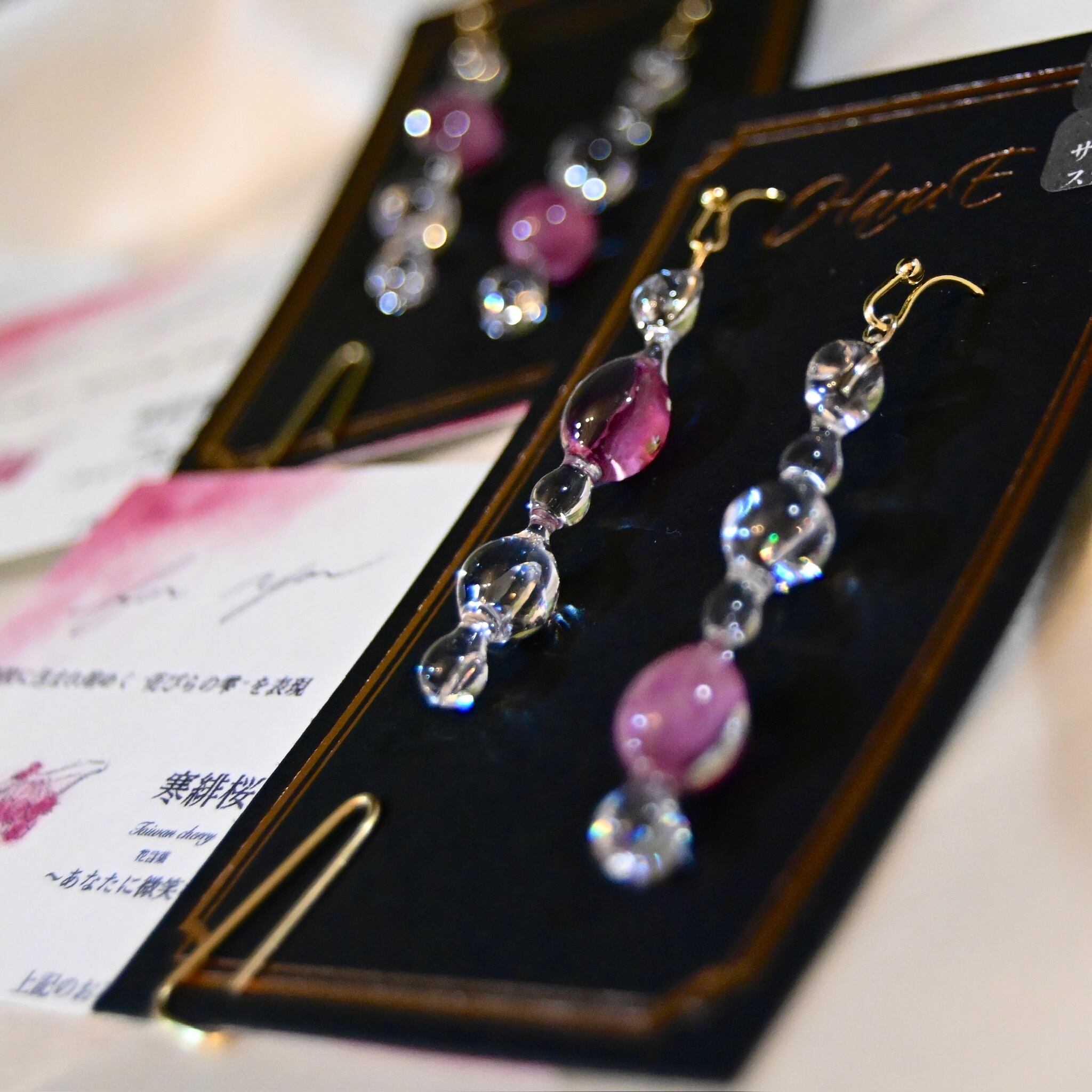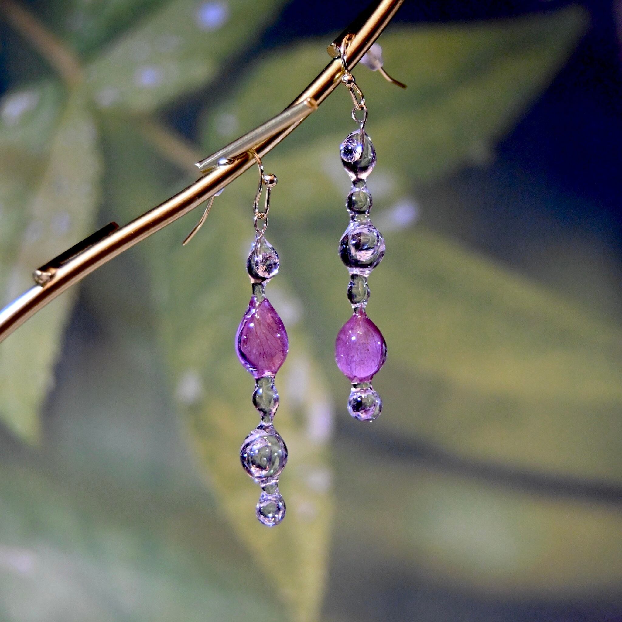寒緋桜の色彩映る雫柱✴︎ジルコニア入り・ピアス・イヤリング