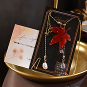 雫煌めく紅葉Y字ネックレス