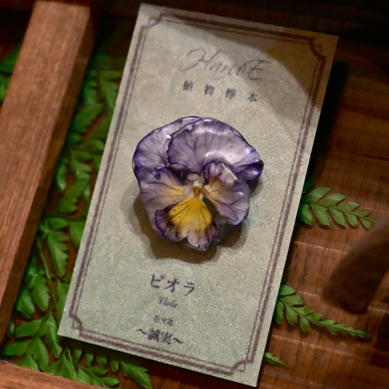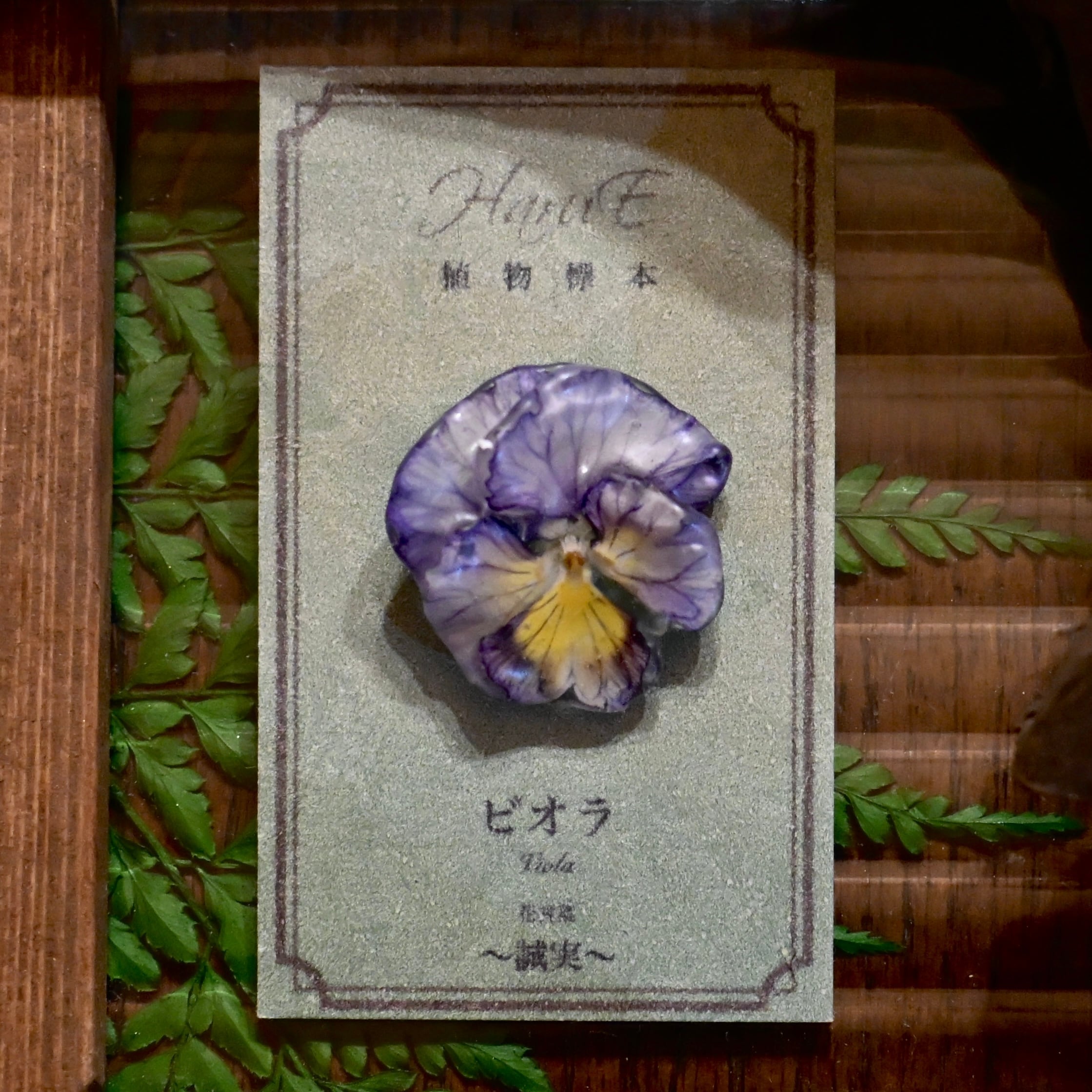 【植物標本】青紫ビオラ〜ピンブローチ〜