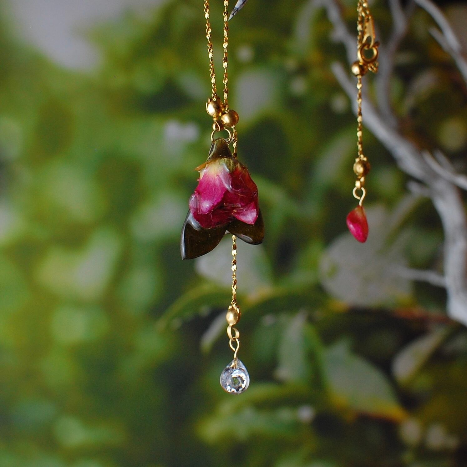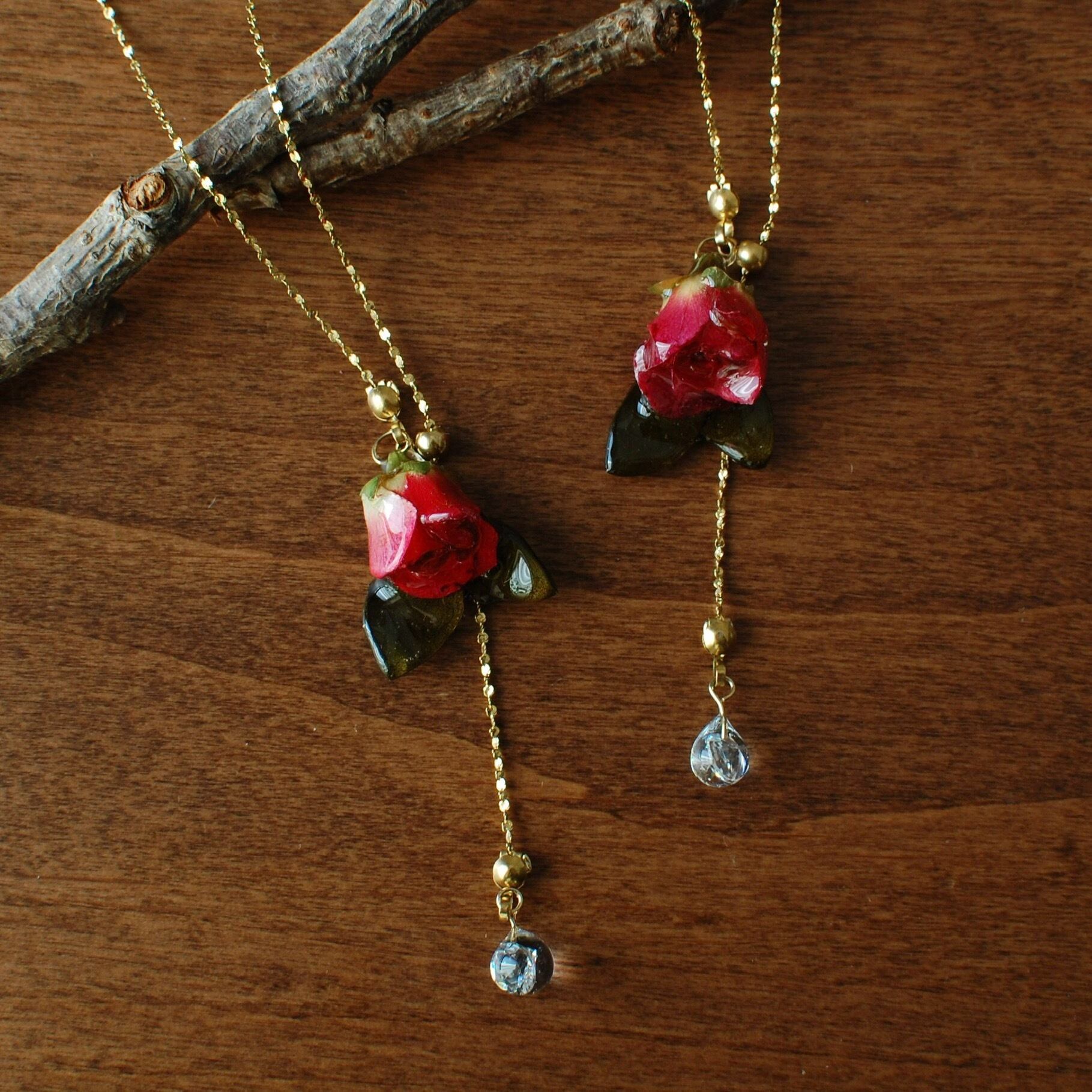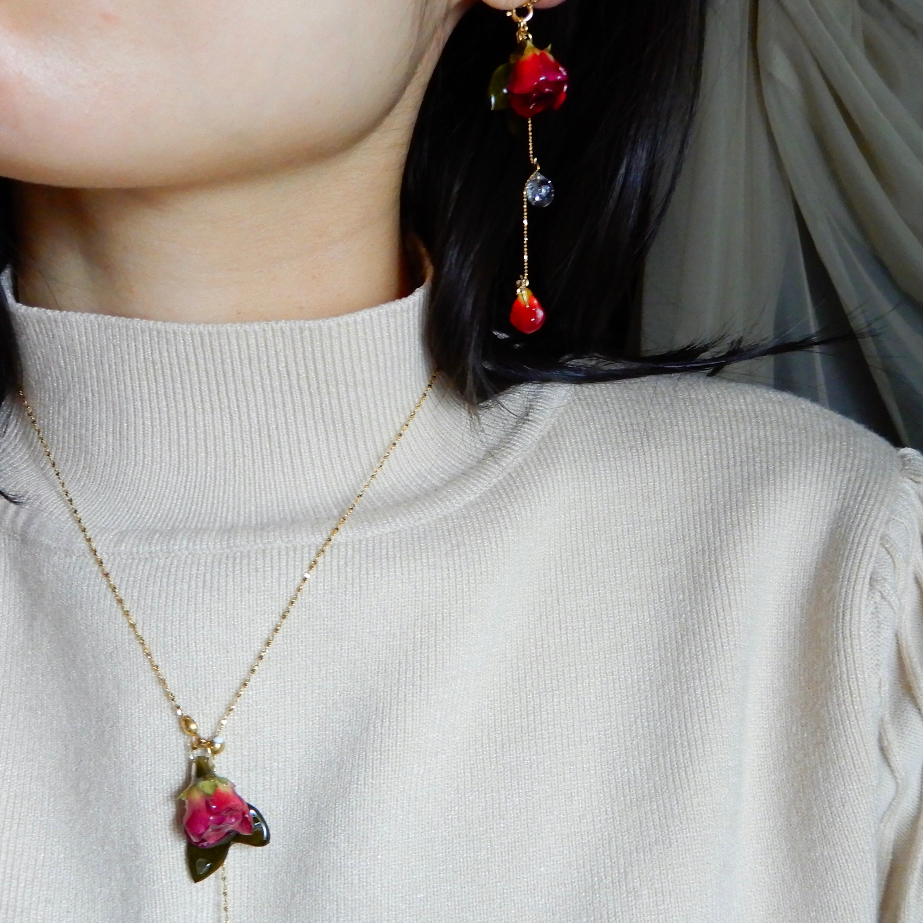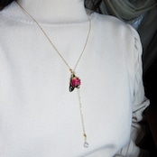 雫煌めく小さな赤薔薇 〜Y字ネックレス〜