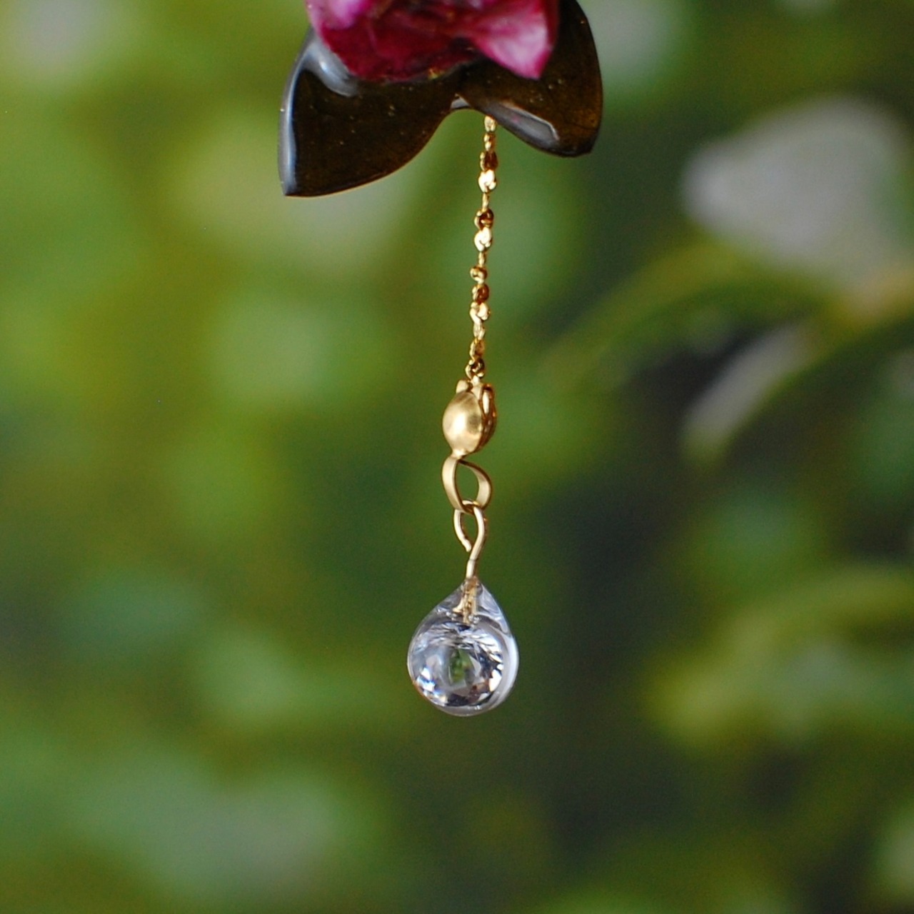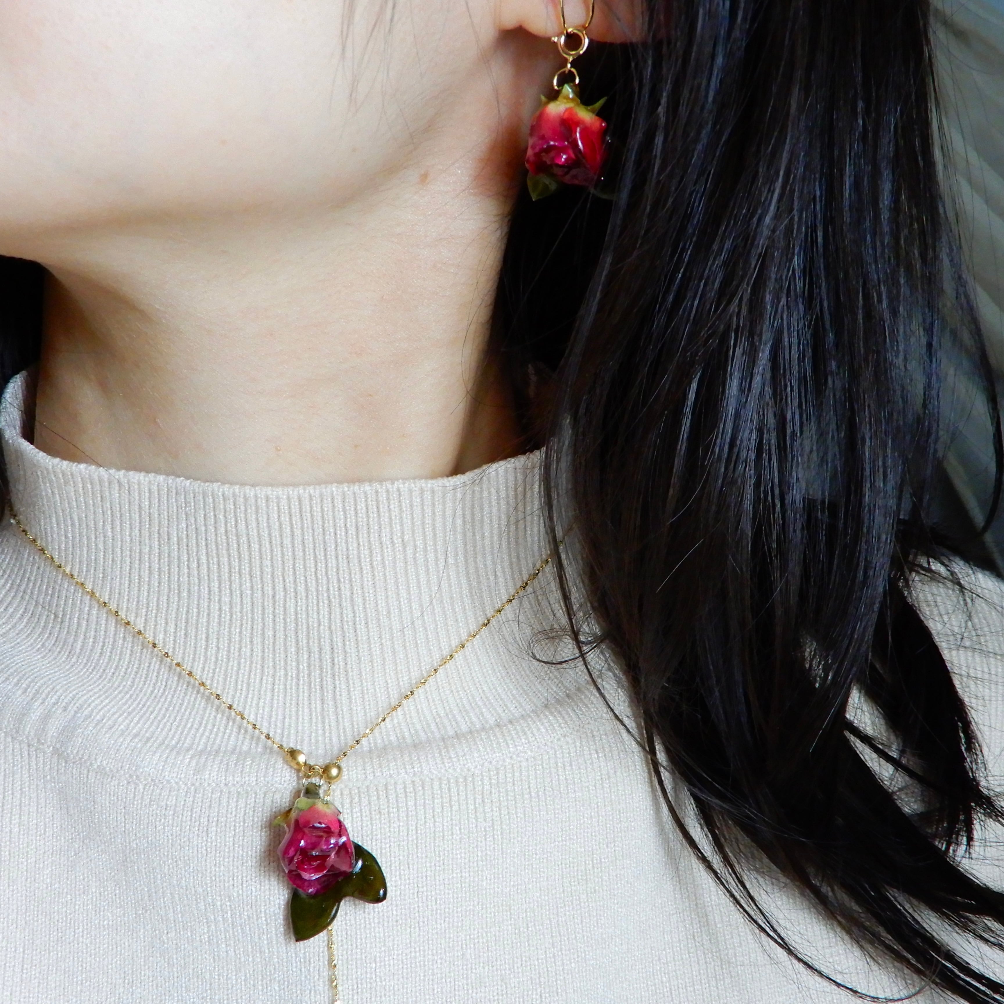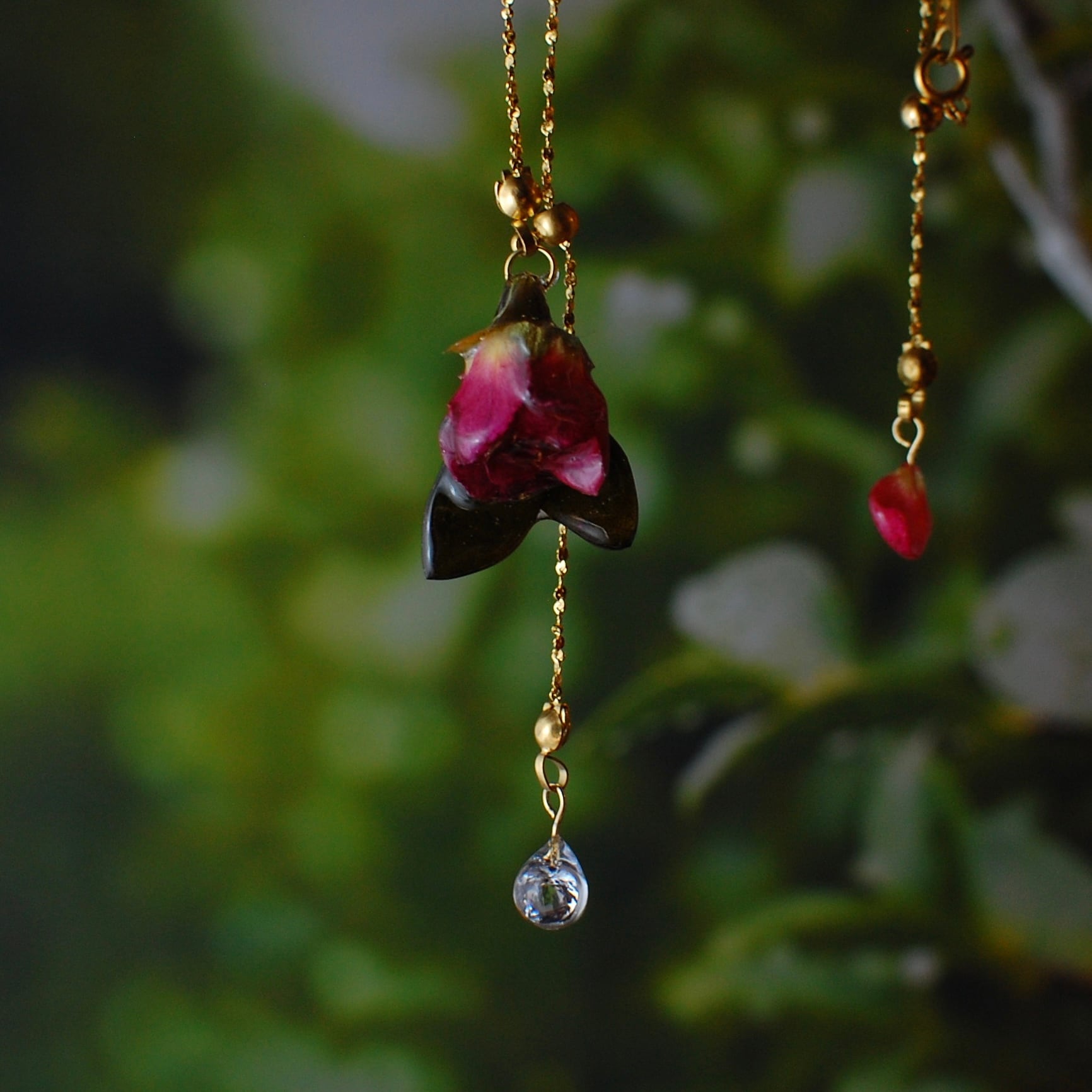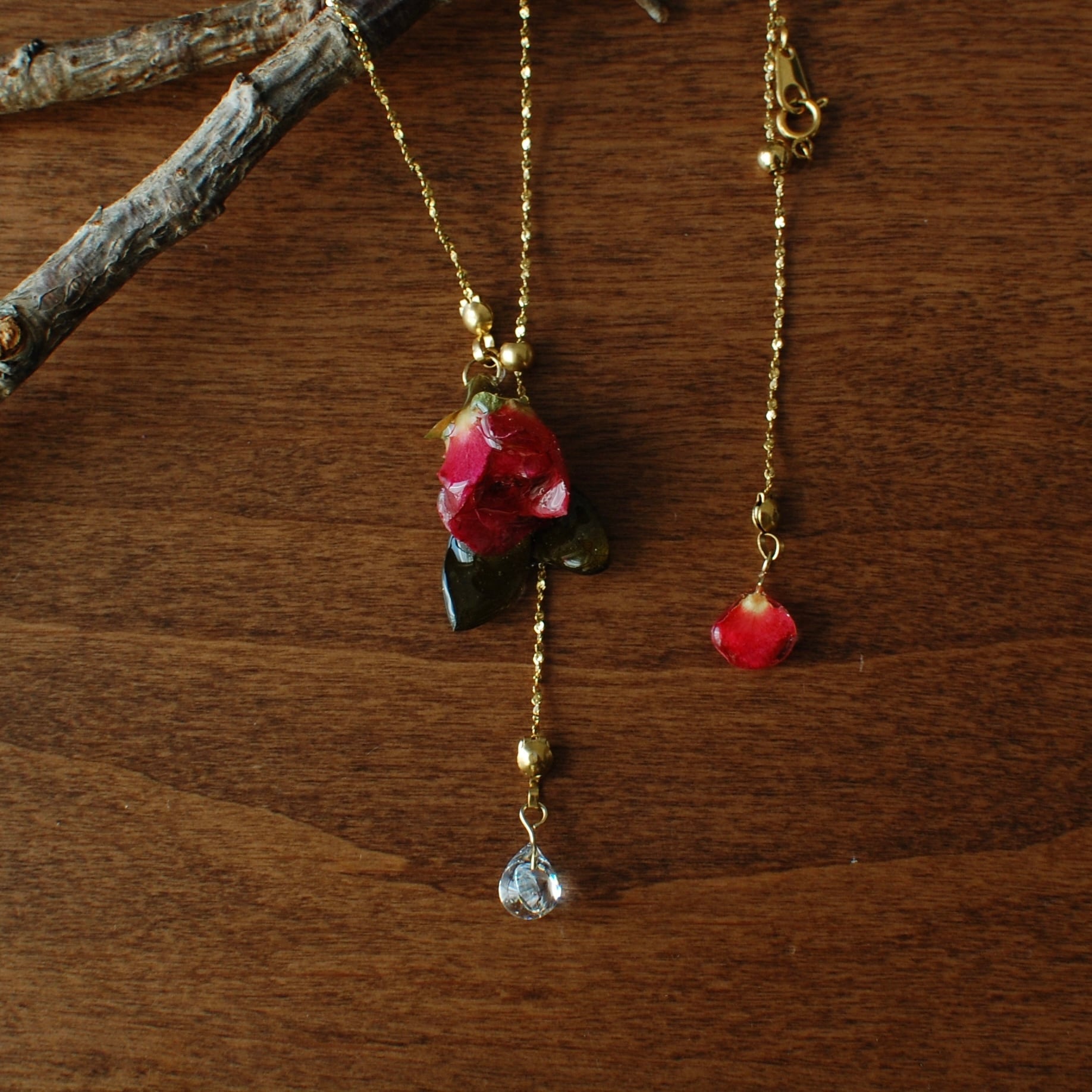 雫煌めく小さな赤薔薇 〜Y字ネックレス〜