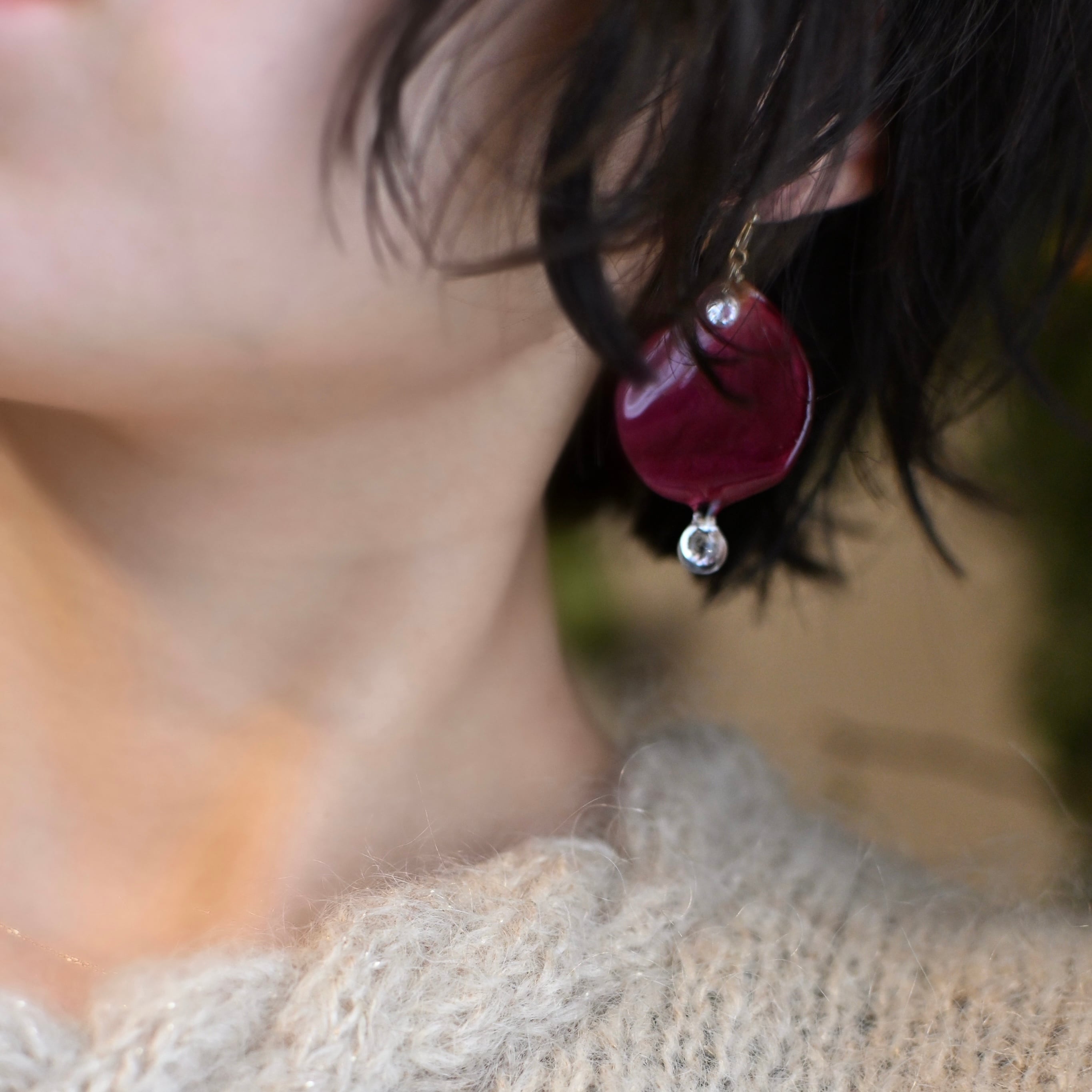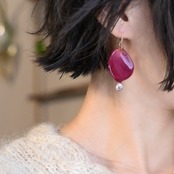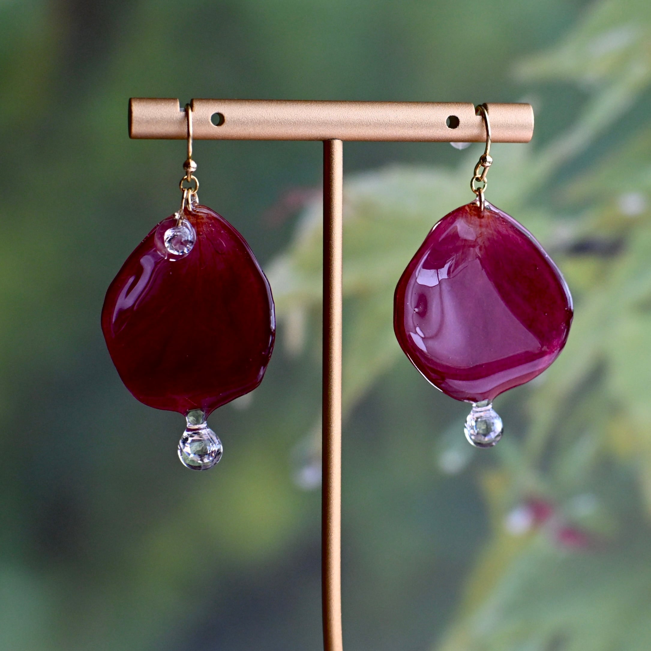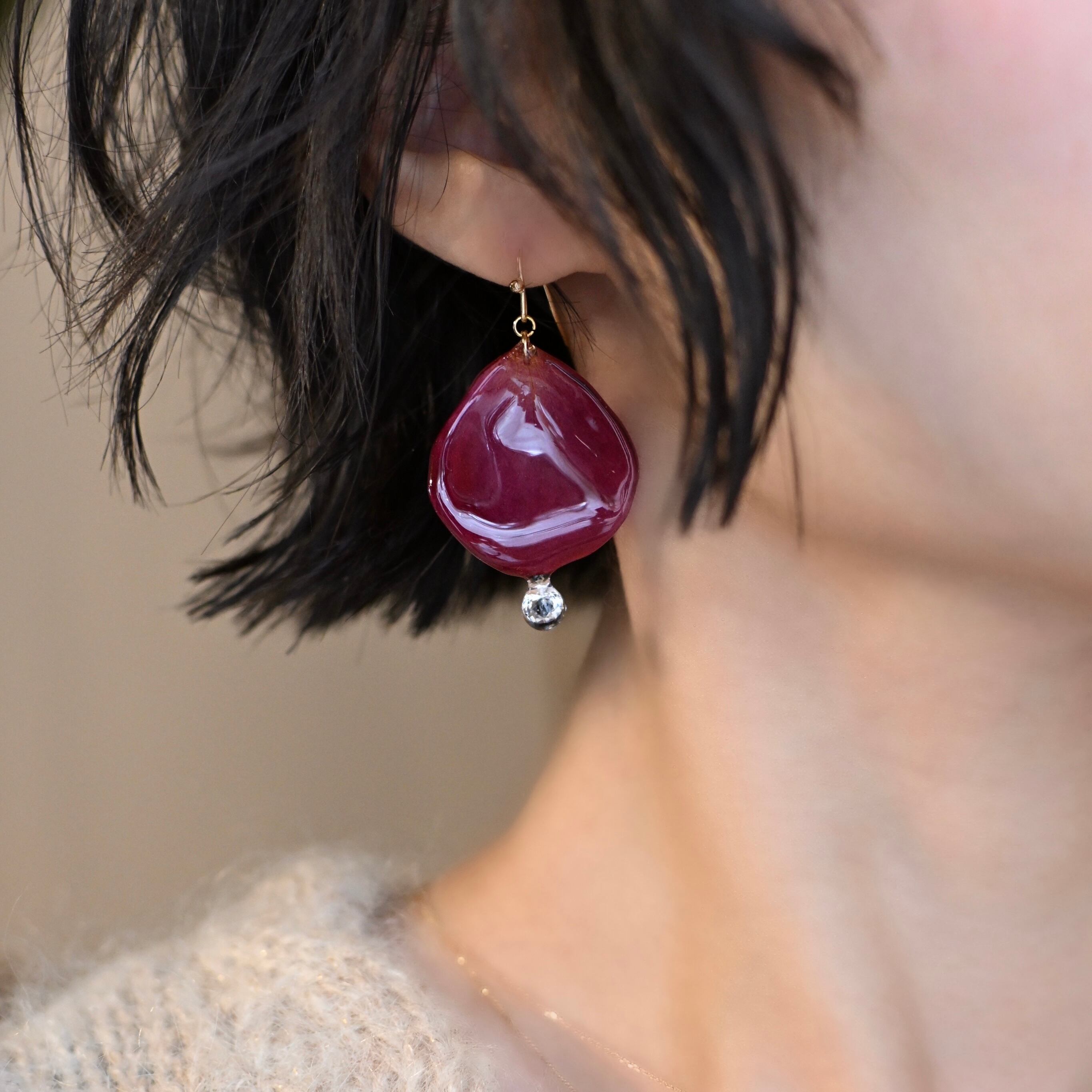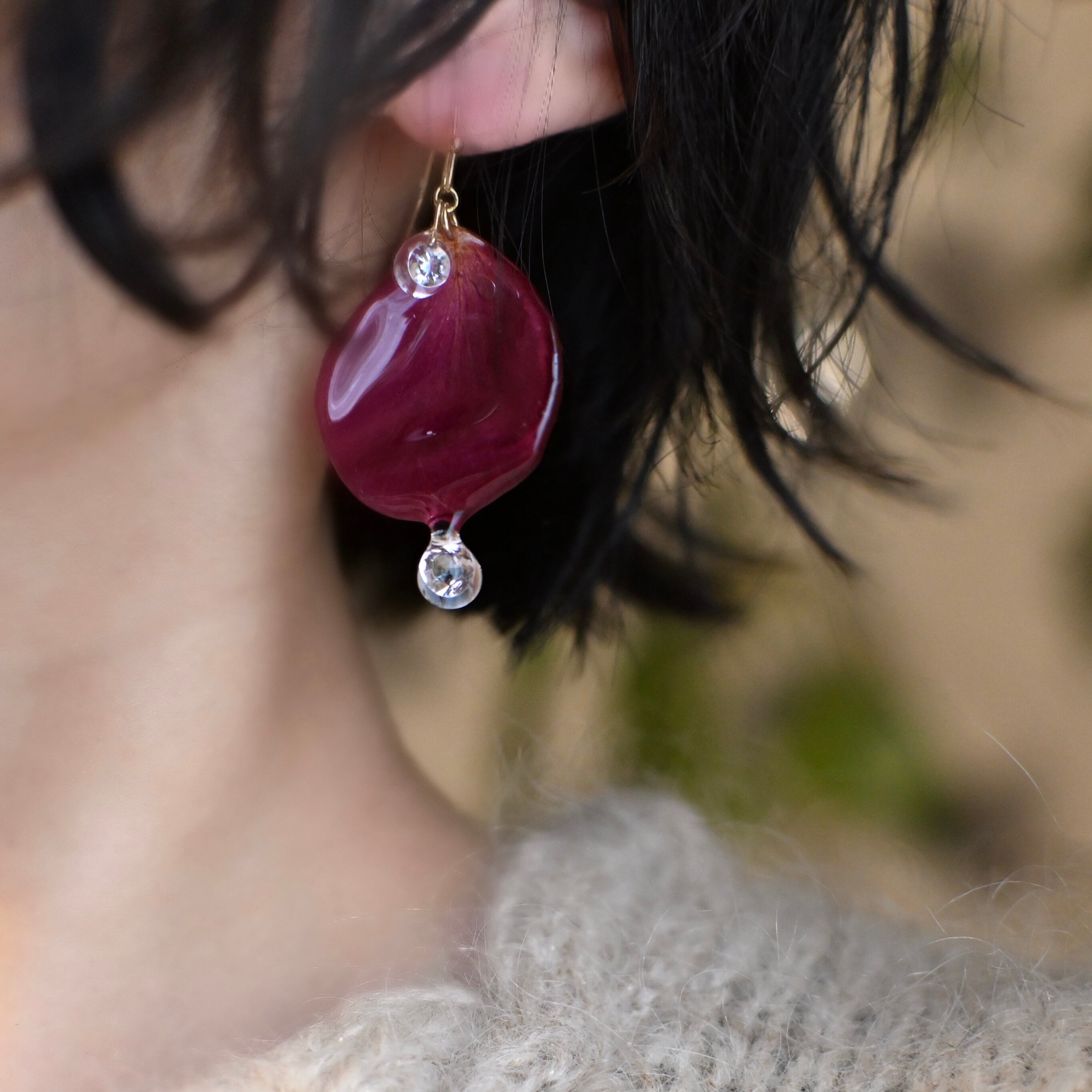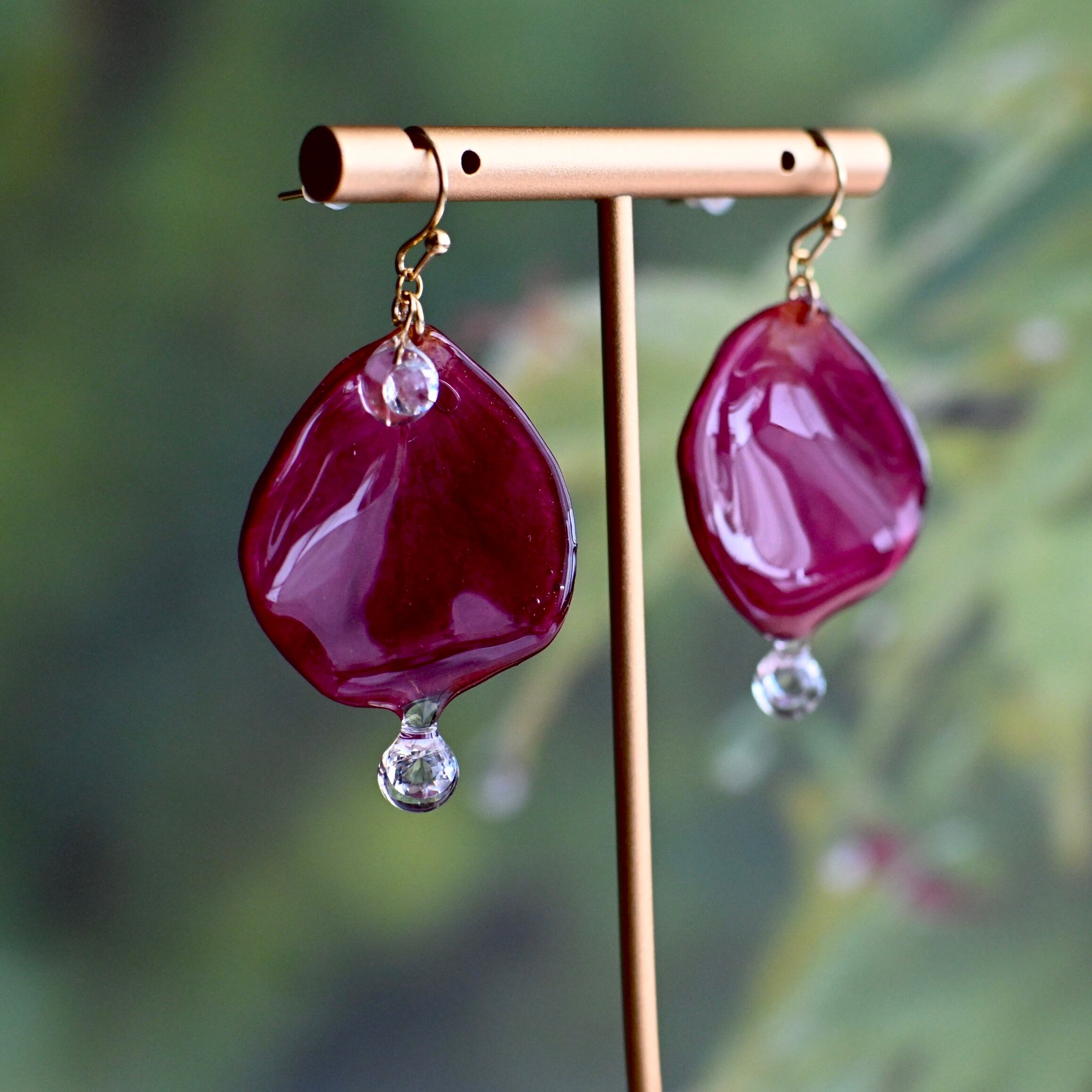 朝露の雫煌めくワインレッドの薔薇✴︎ジルコニア〜ピアス・イヤリング