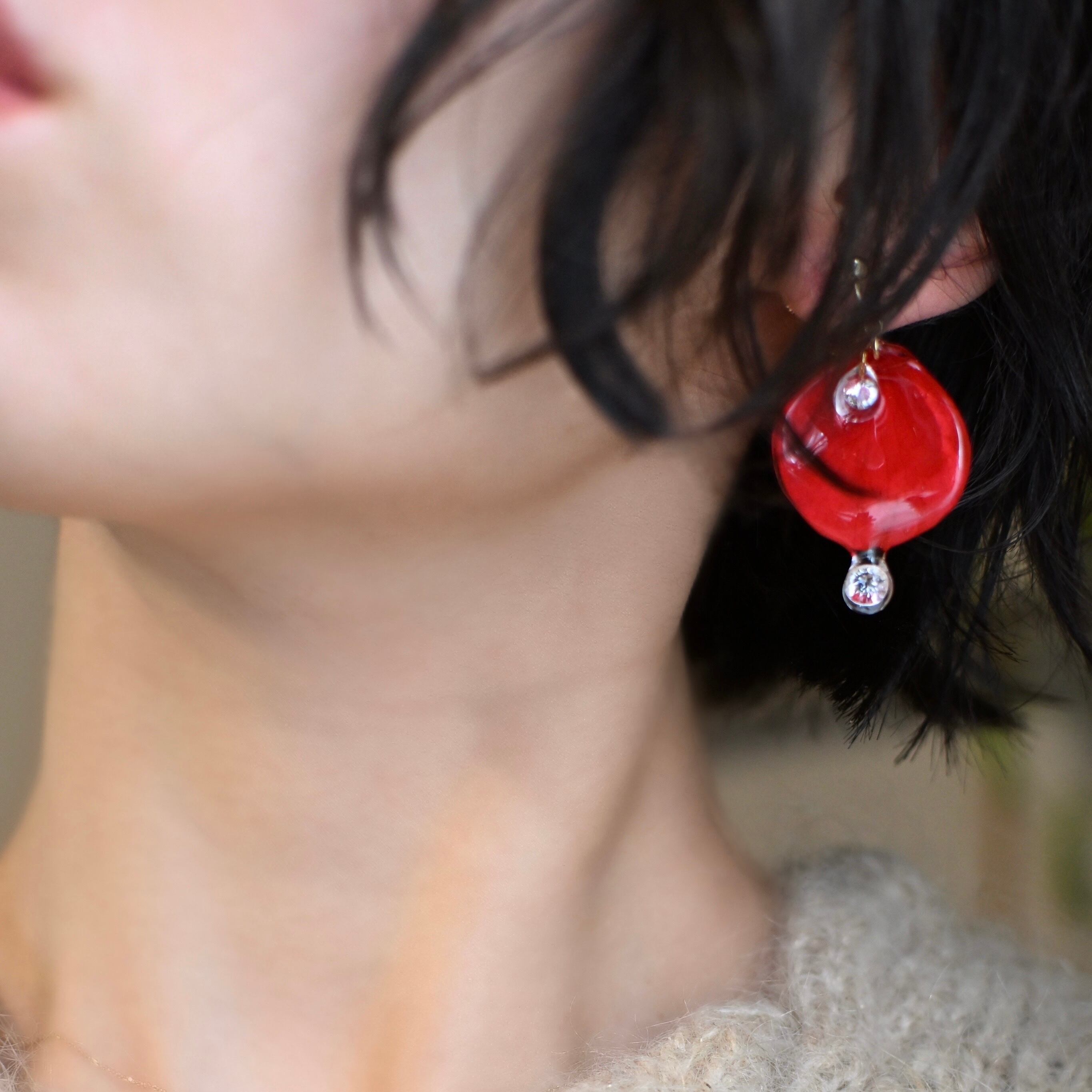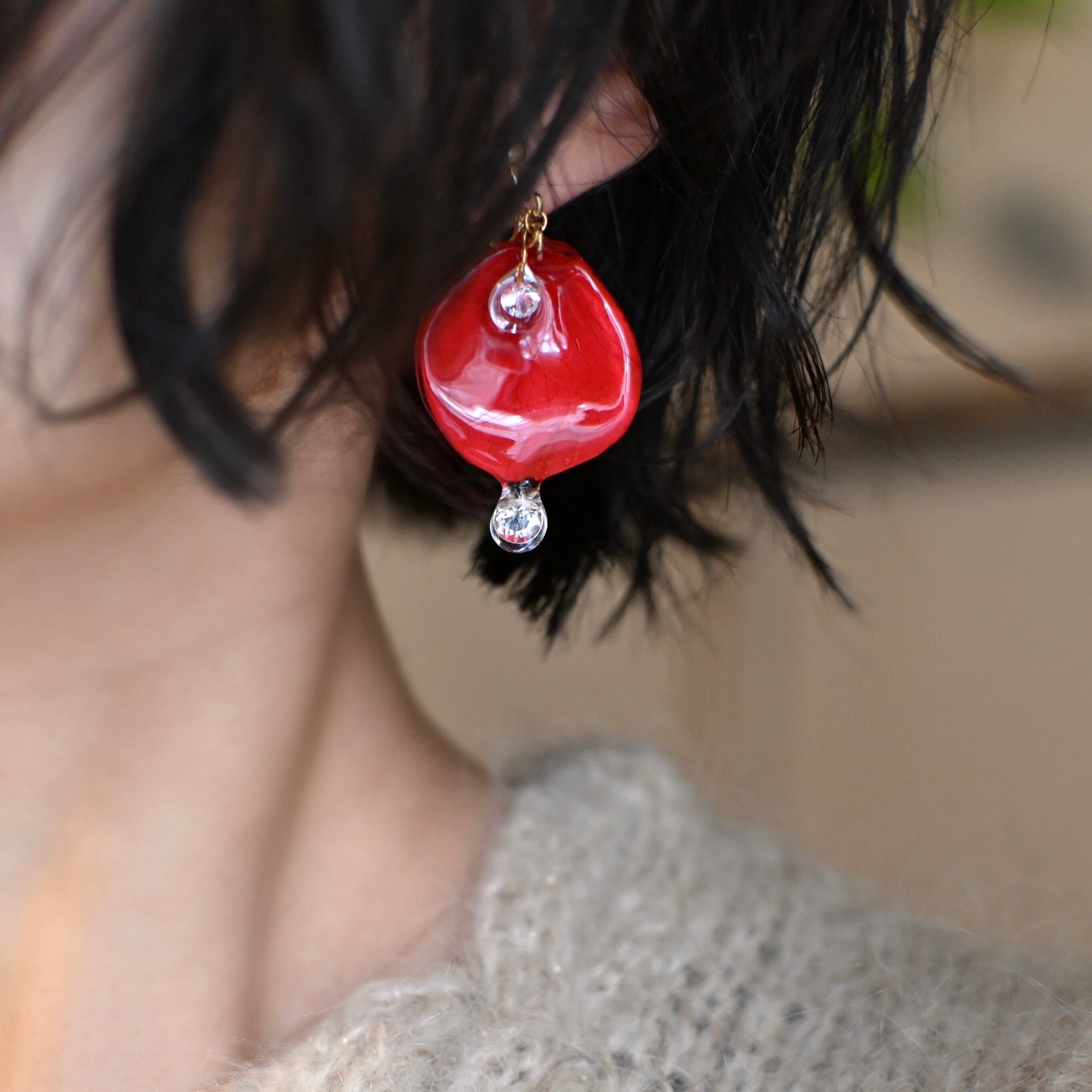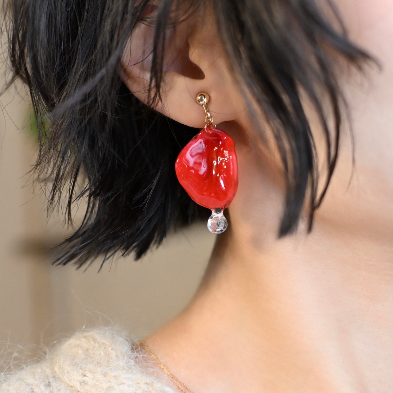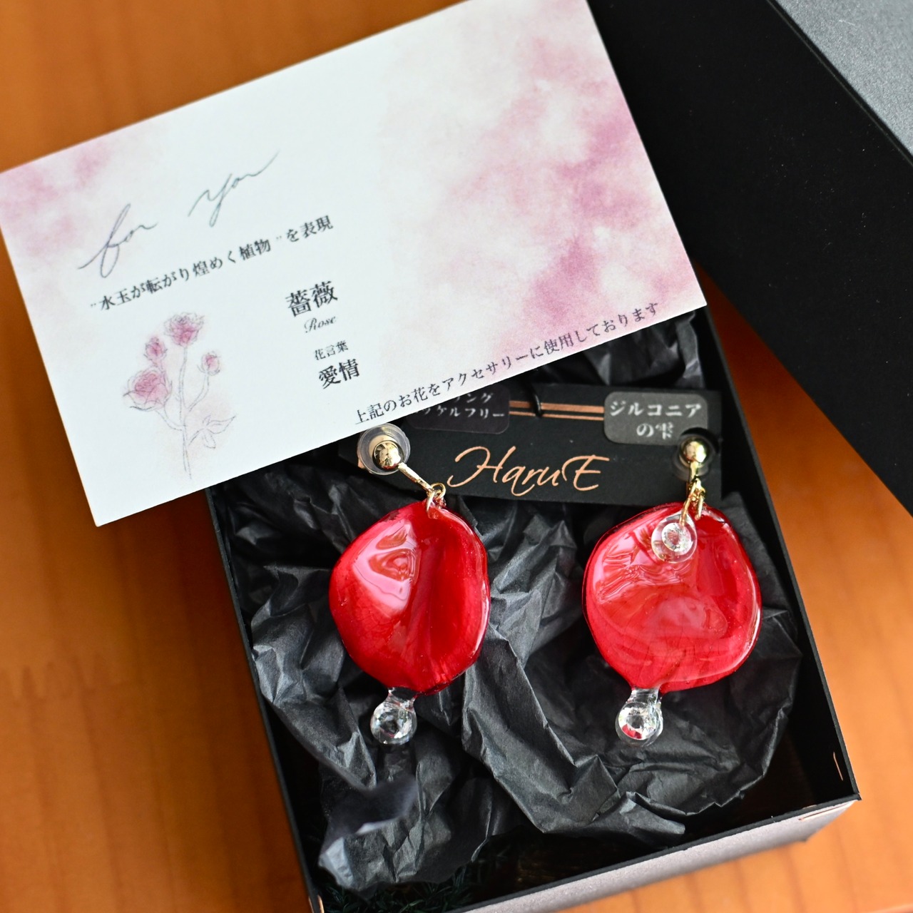 朝露の雫煌めくの赤薔薇✴︎ジルコニア〜ピアス・イヤリング