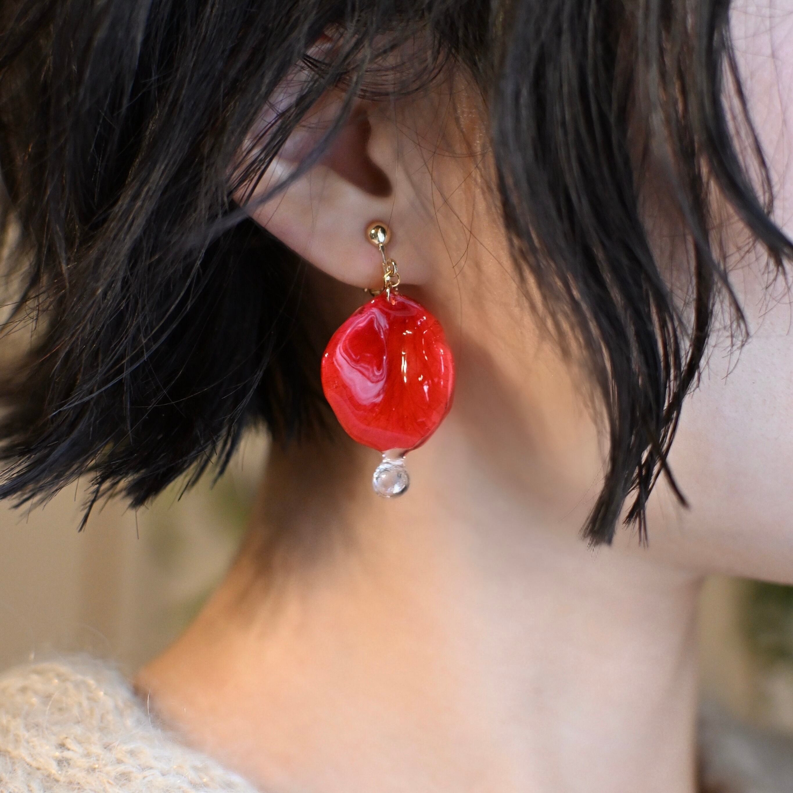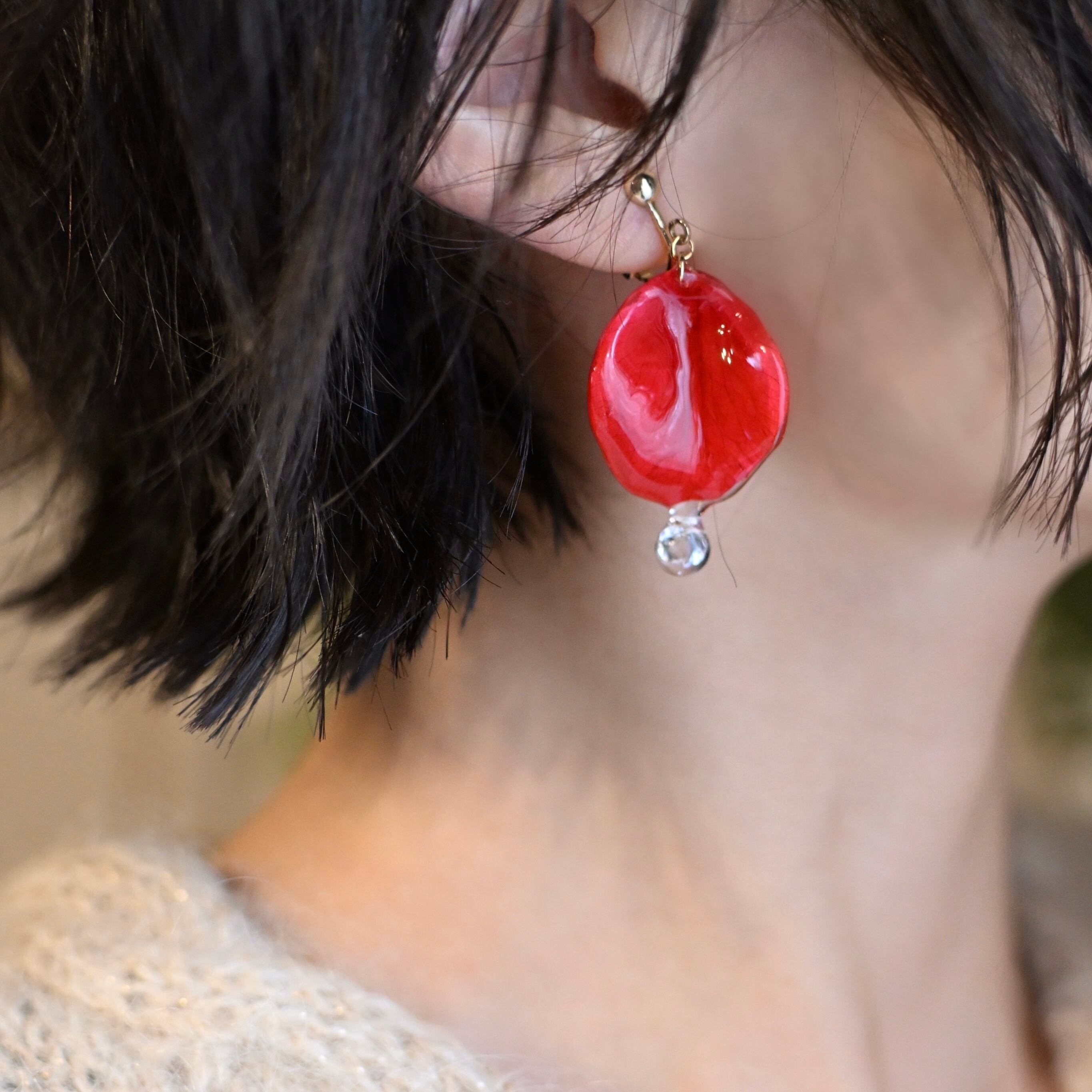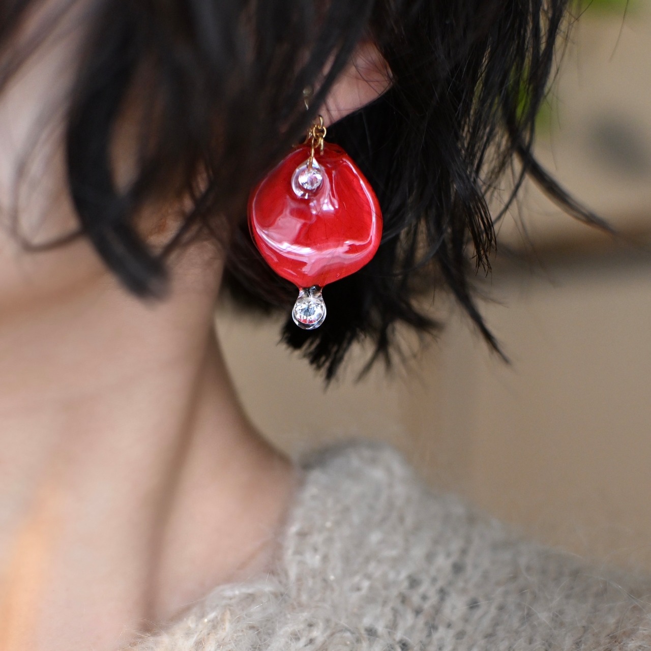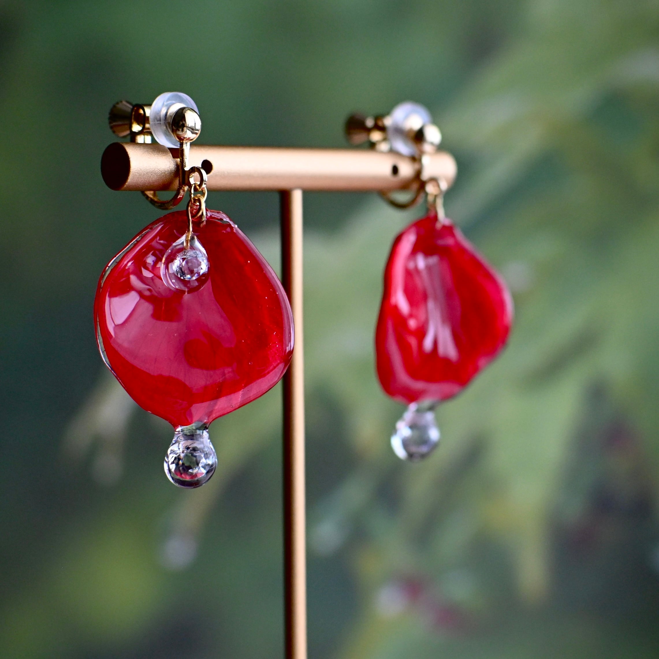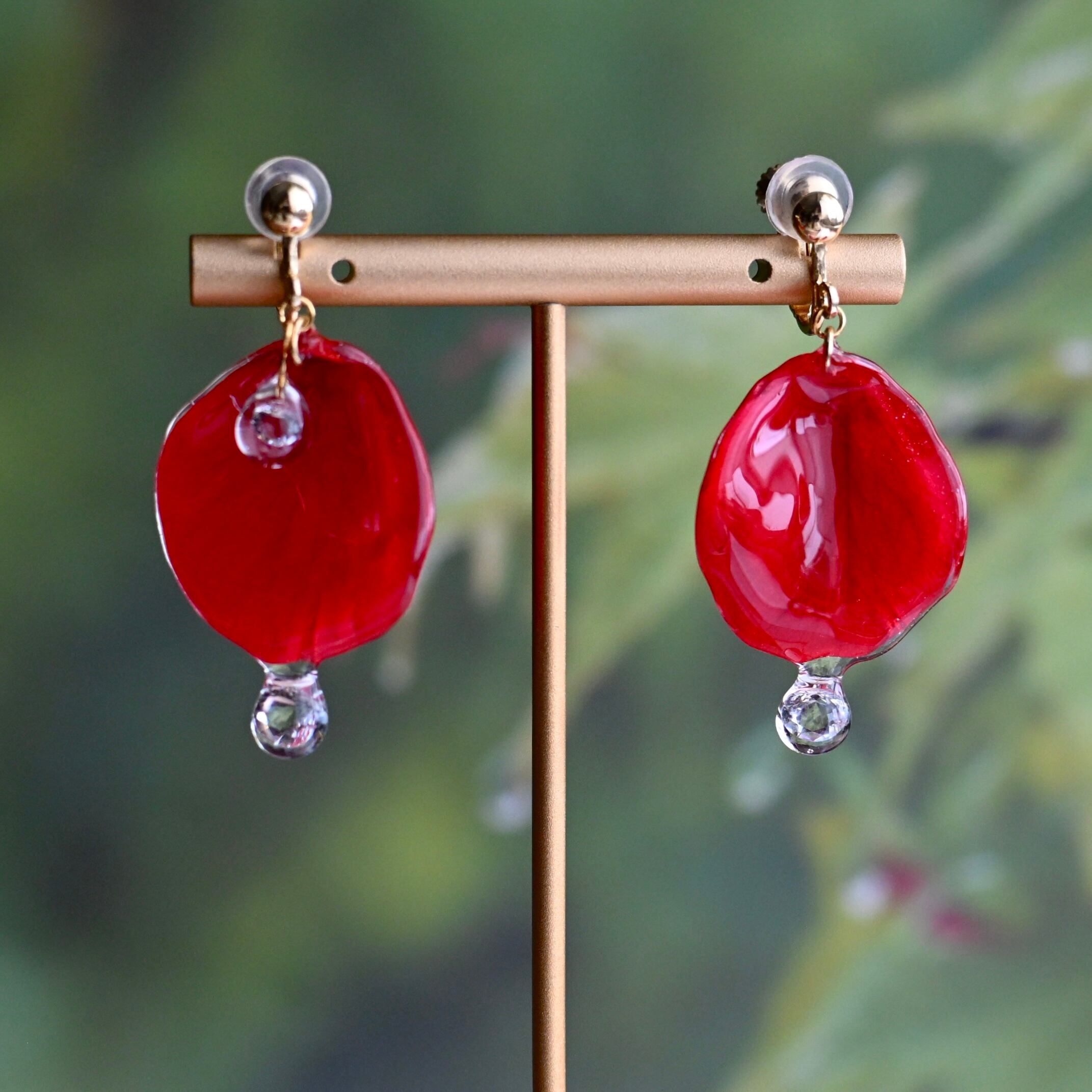 朝露の雫煌めくの赤薔薇✴︎ジルコニア〜ピアス・イヤリング