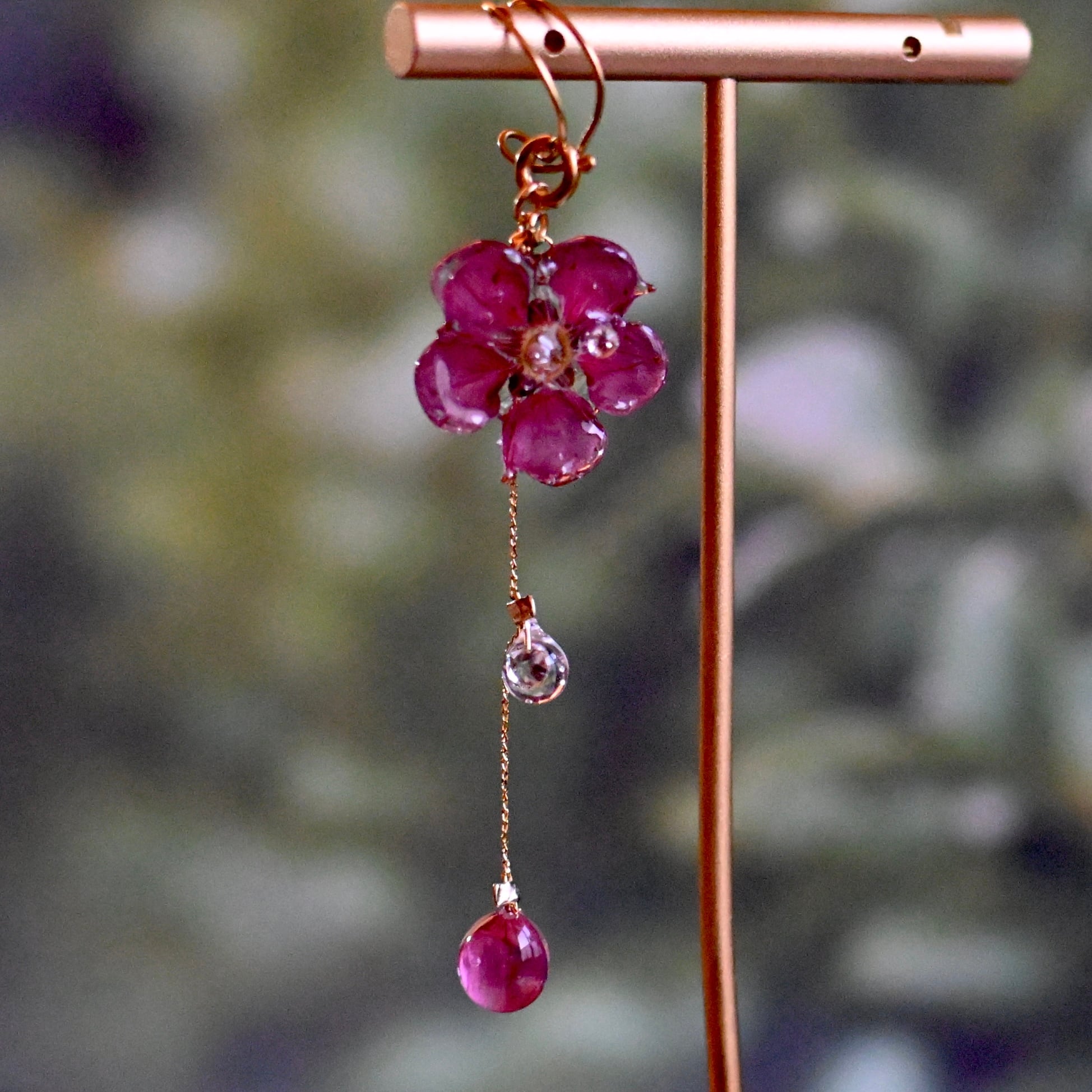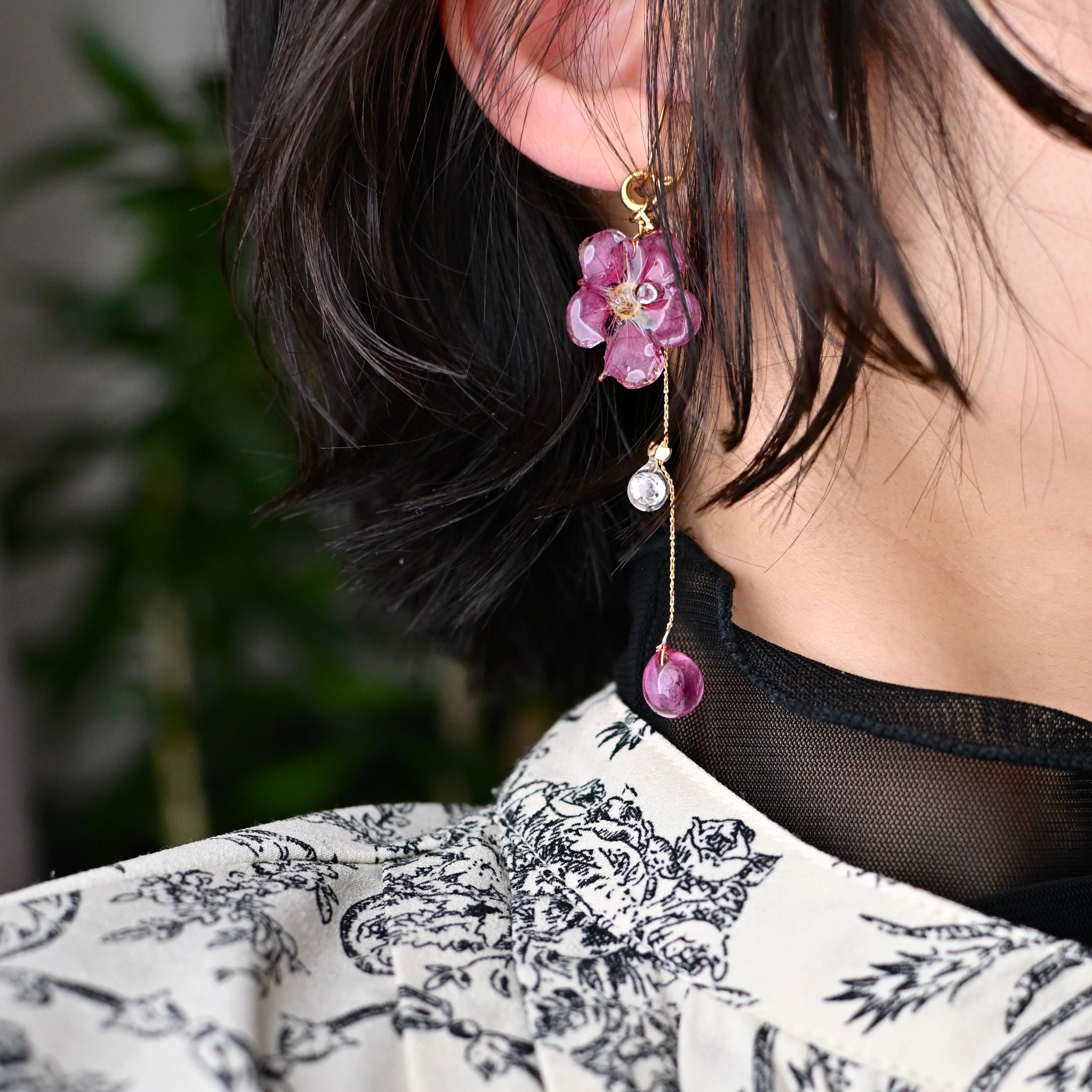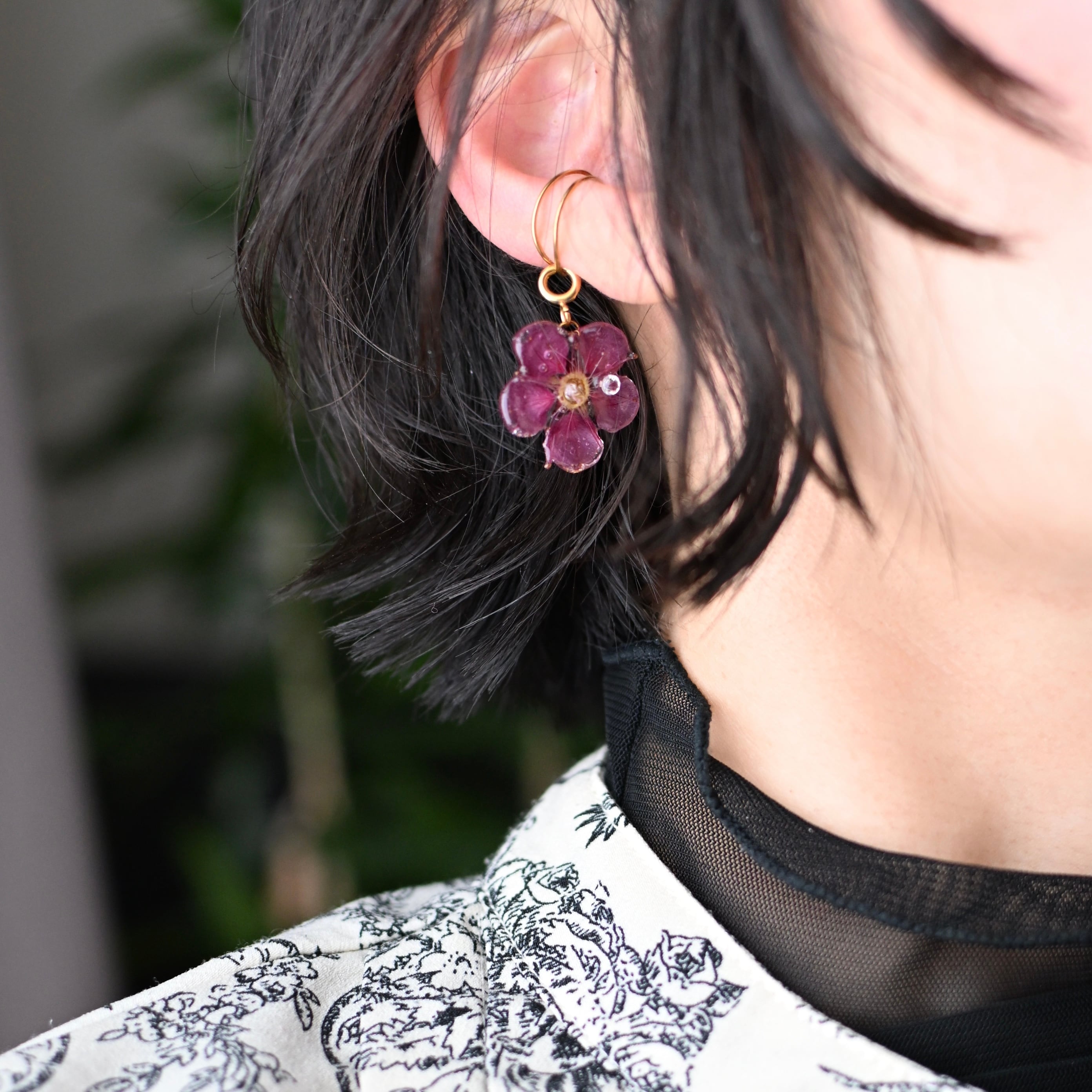 【片耳3way】朝露の雫煌めくの一輪の梅の花✴︎ジルコニアの雫