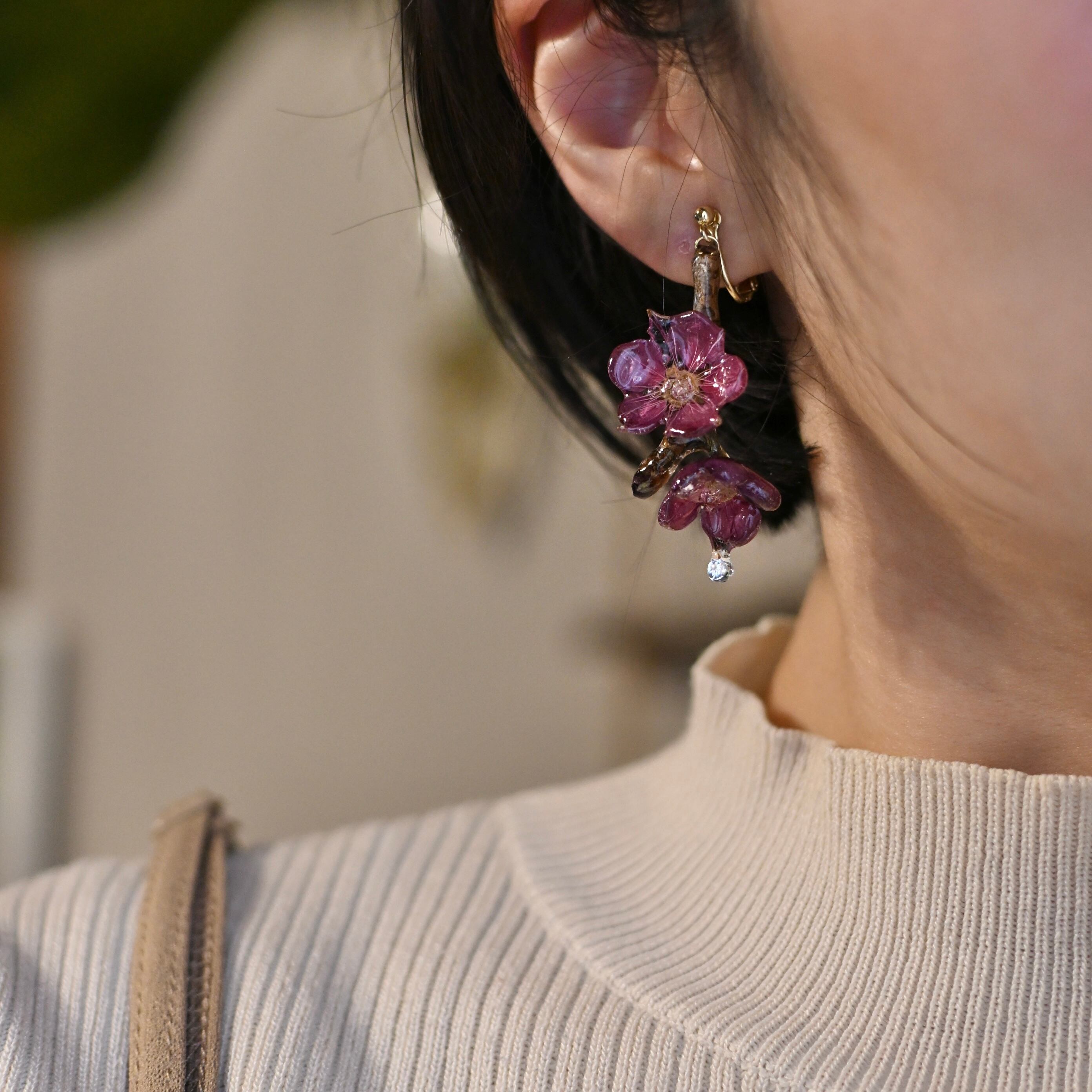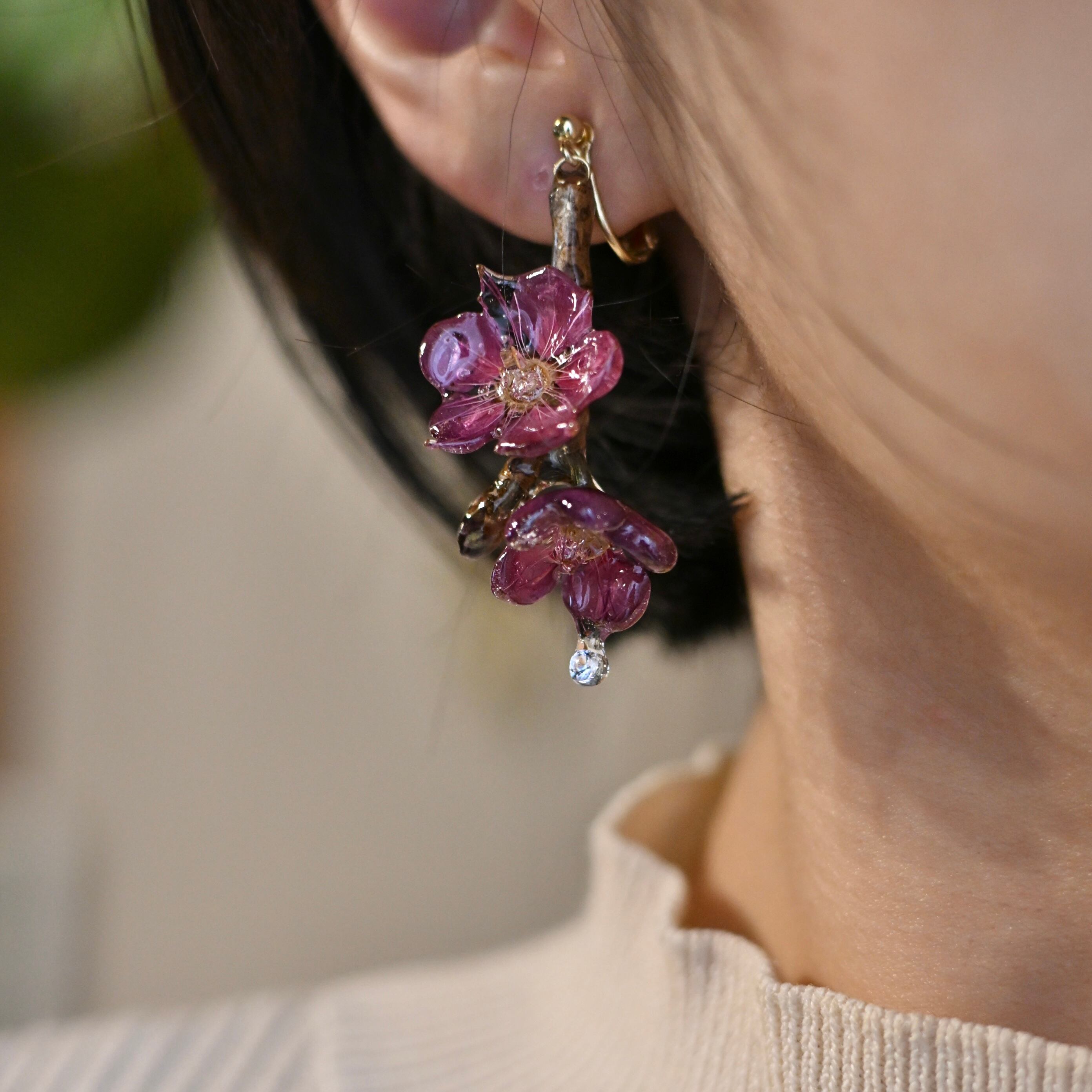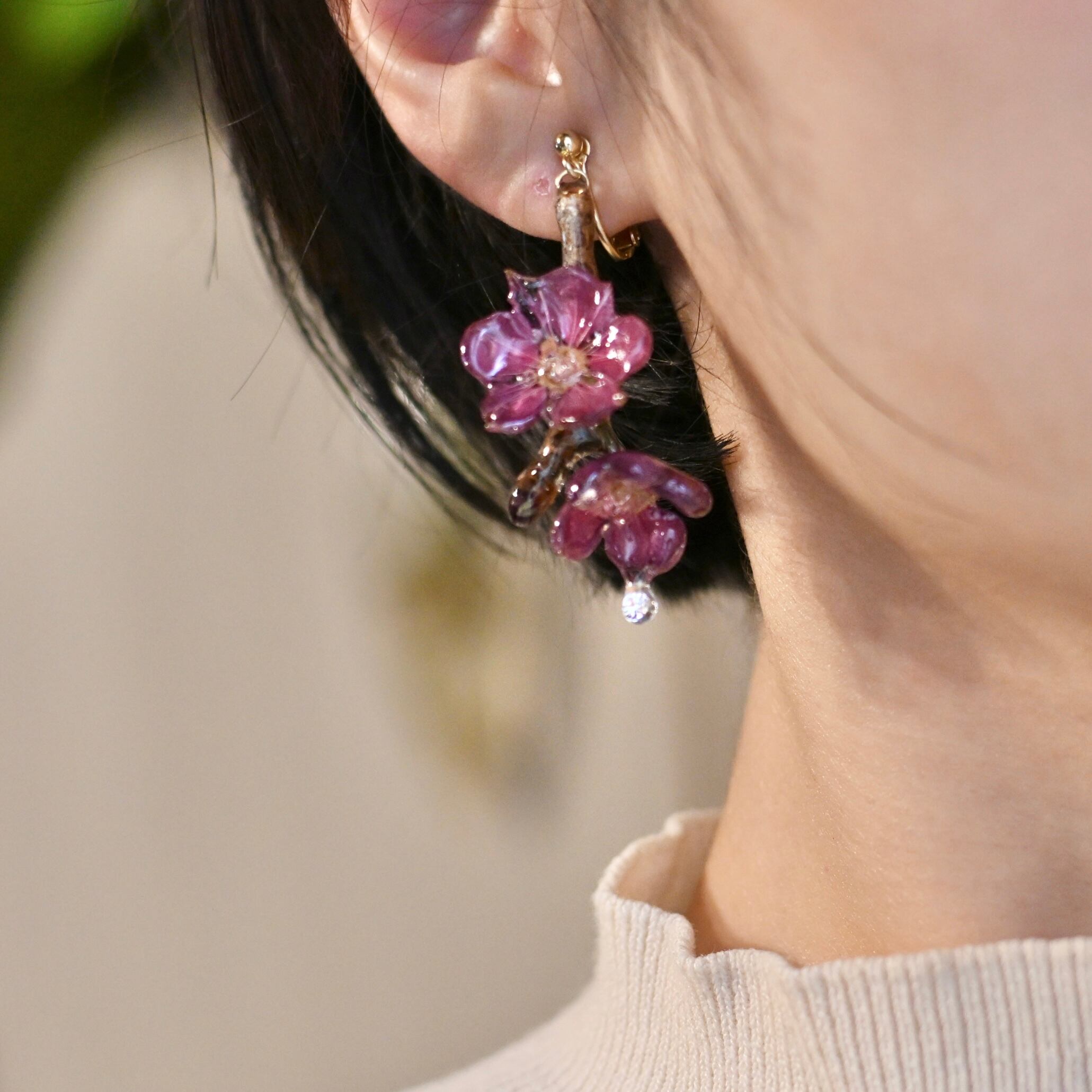 朝露の雫煌めく梅の枝先✴︎ジルコニア〜ピアス・イヤリング