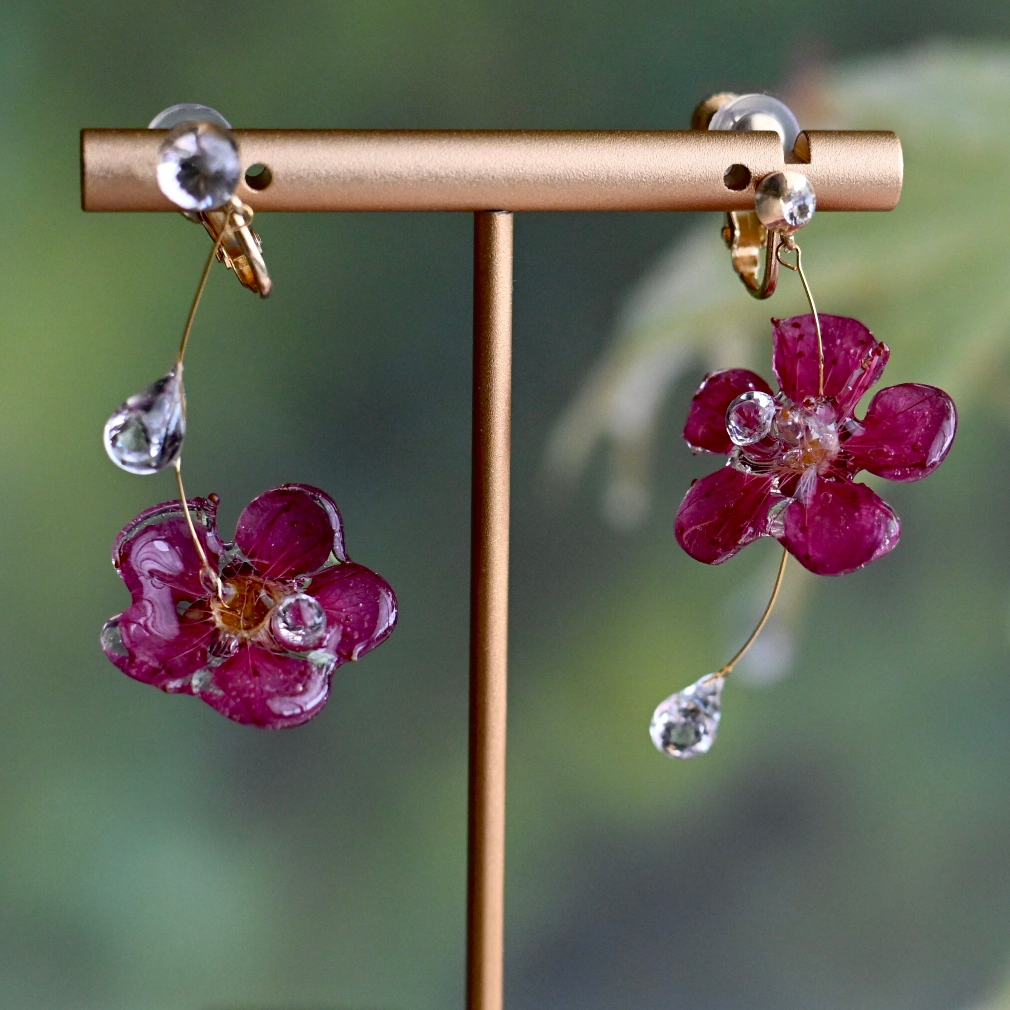 雫滴る瞬間の梅の花✴︎ジルコニア〜ピアス・イヤリング
