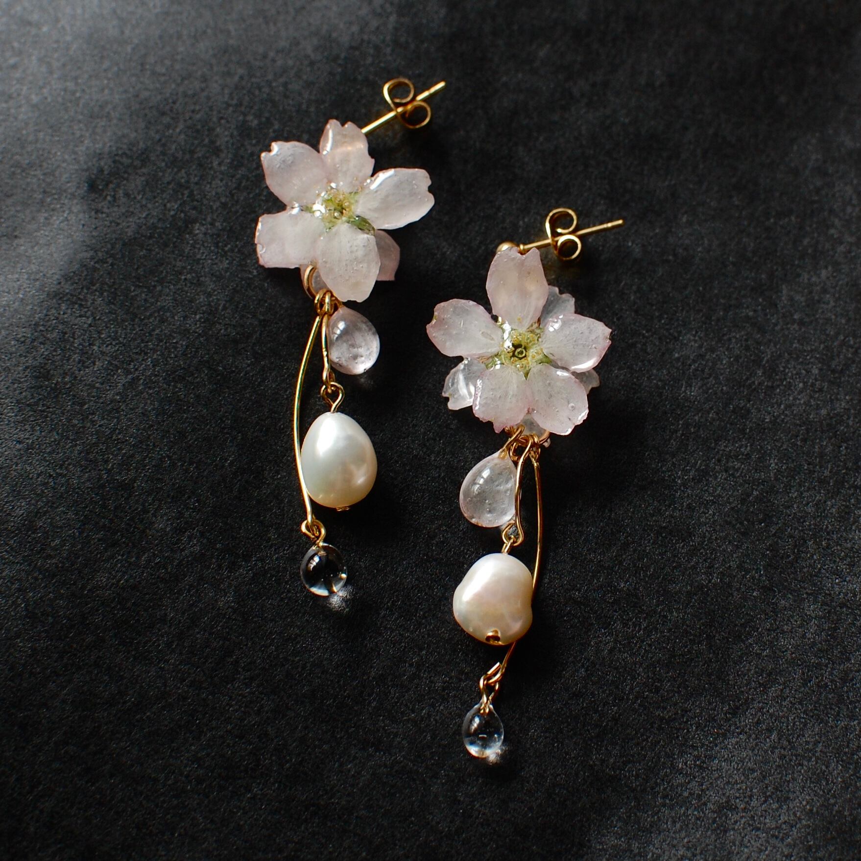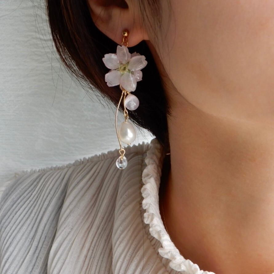 雨上がりの桜✴︎三つの雫〜ピアス・イヤリング