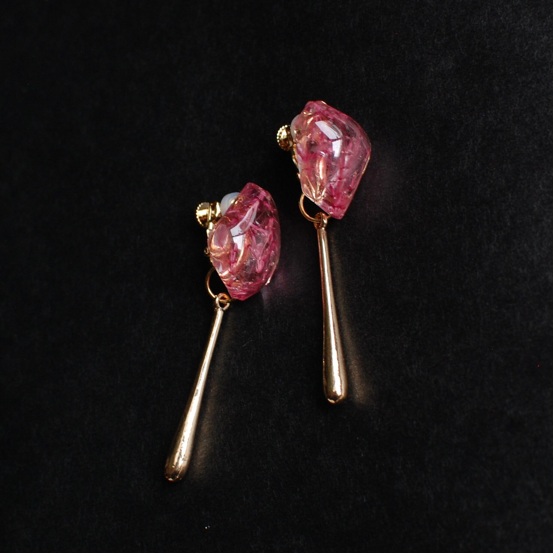 【2way】テールリード煌めく氷から、夕陽色に輝き滴るつらら〜ピンク〜ピアス・イヤリング
