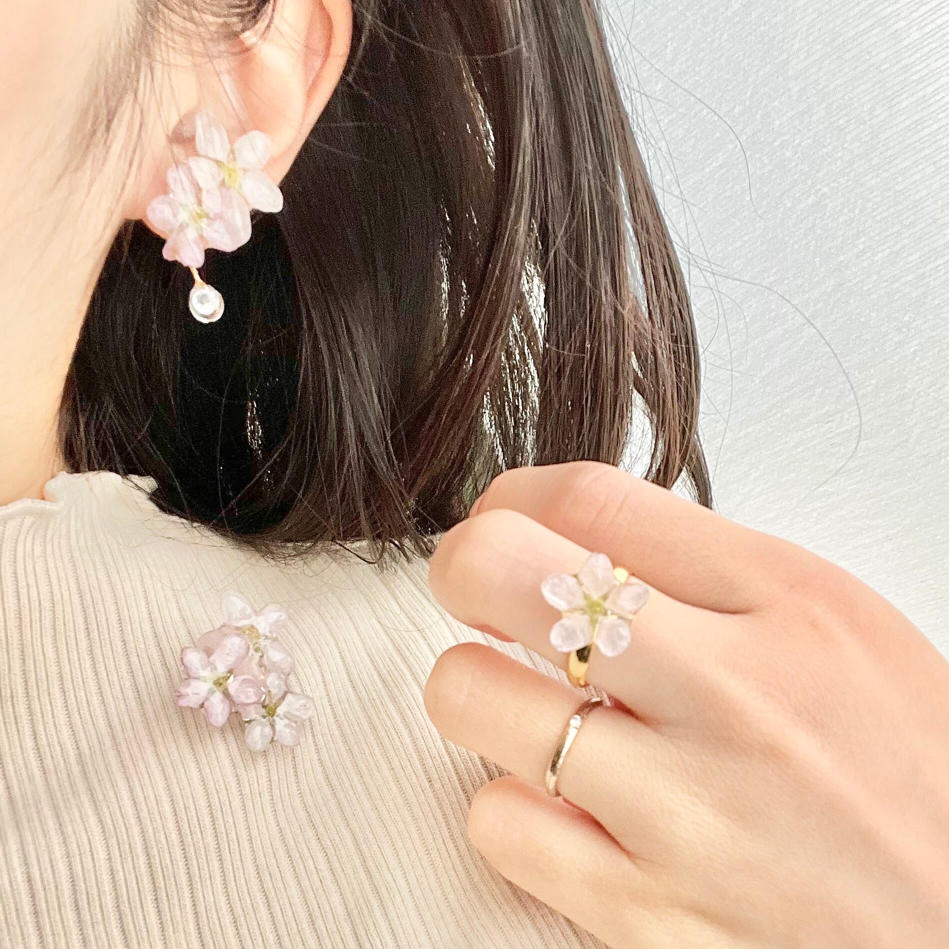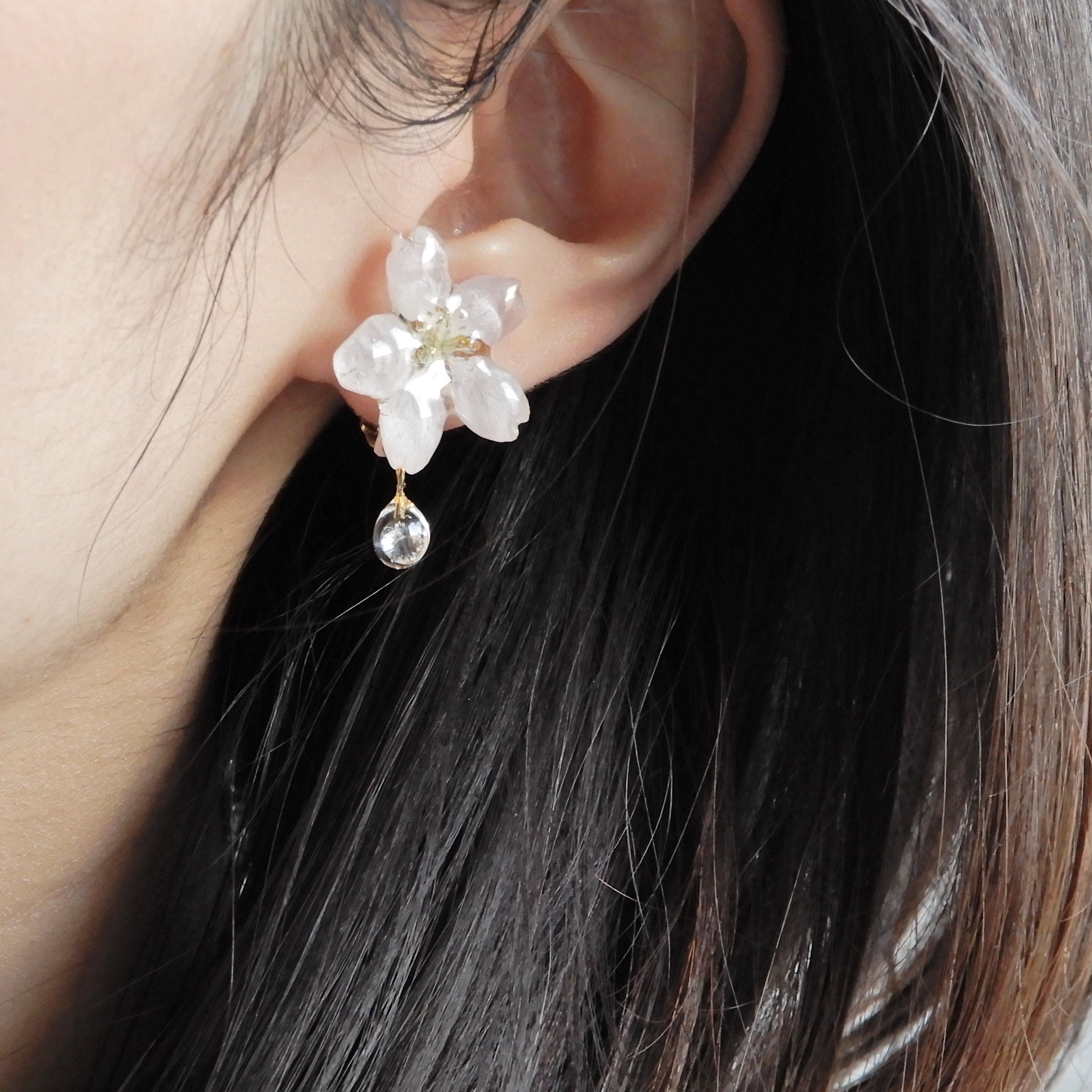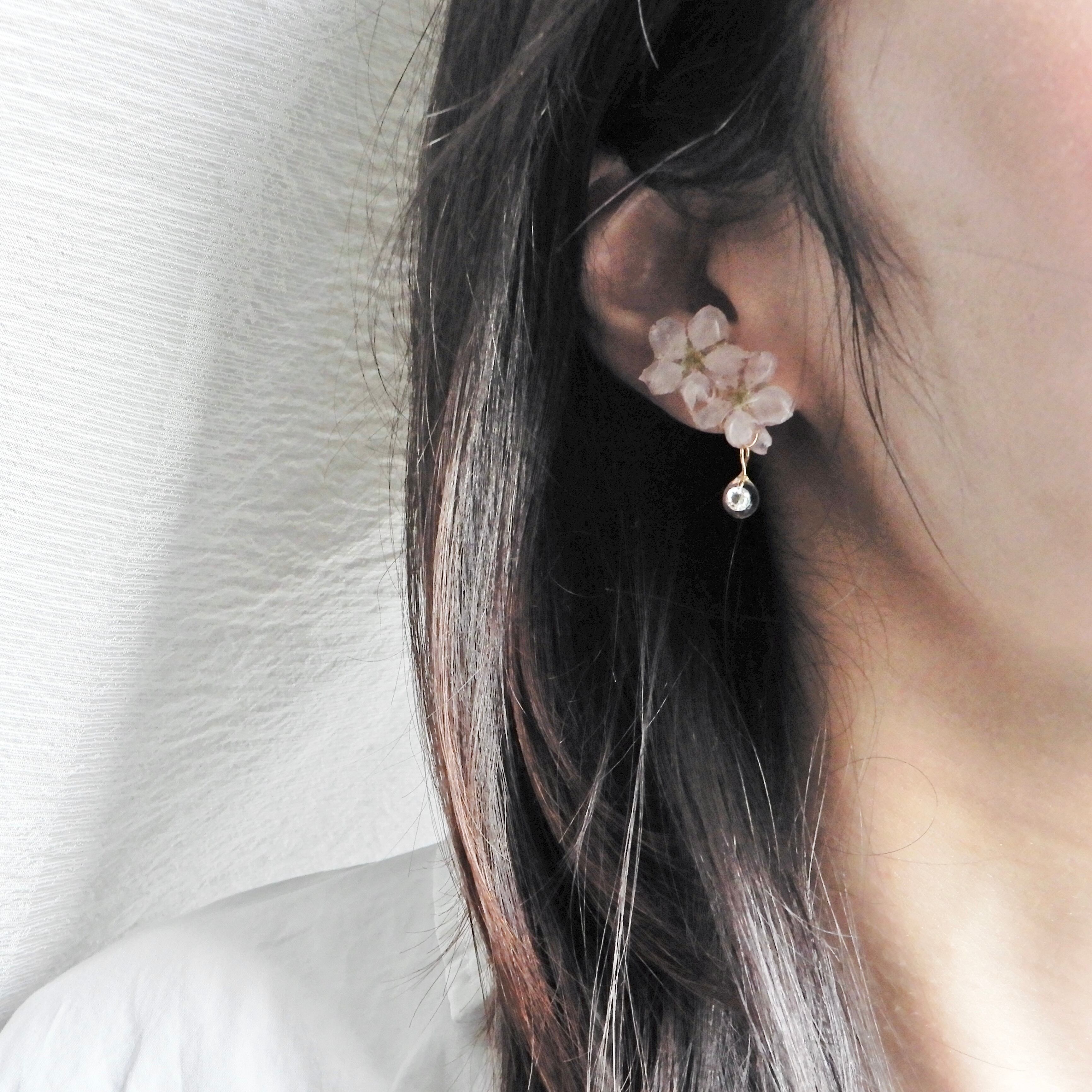 ジルコニアの雫したたる朝露桜✴︎三輪(啓翁桜)〜ピアス・イヤリング