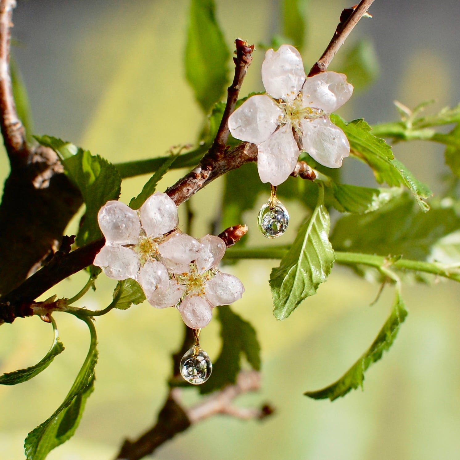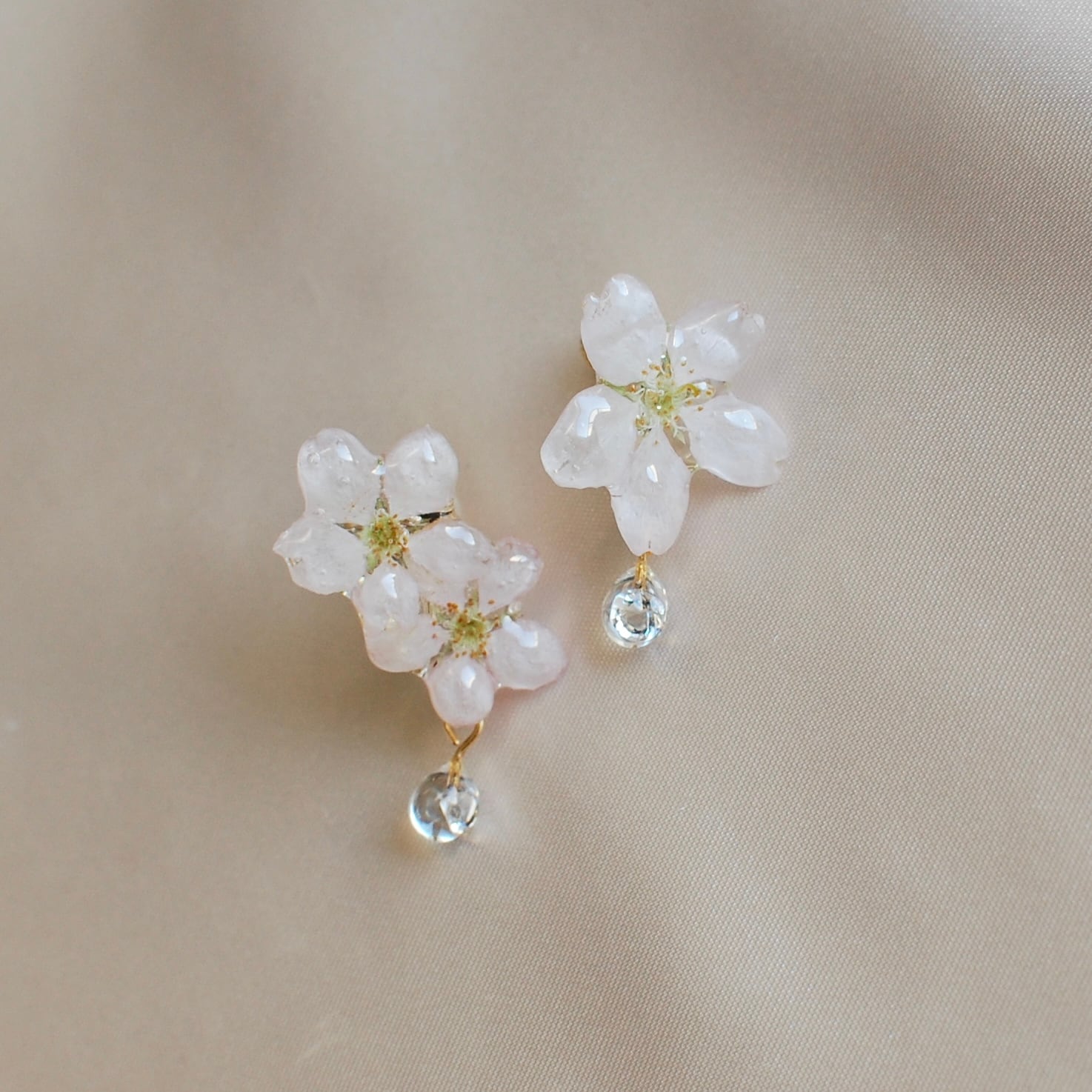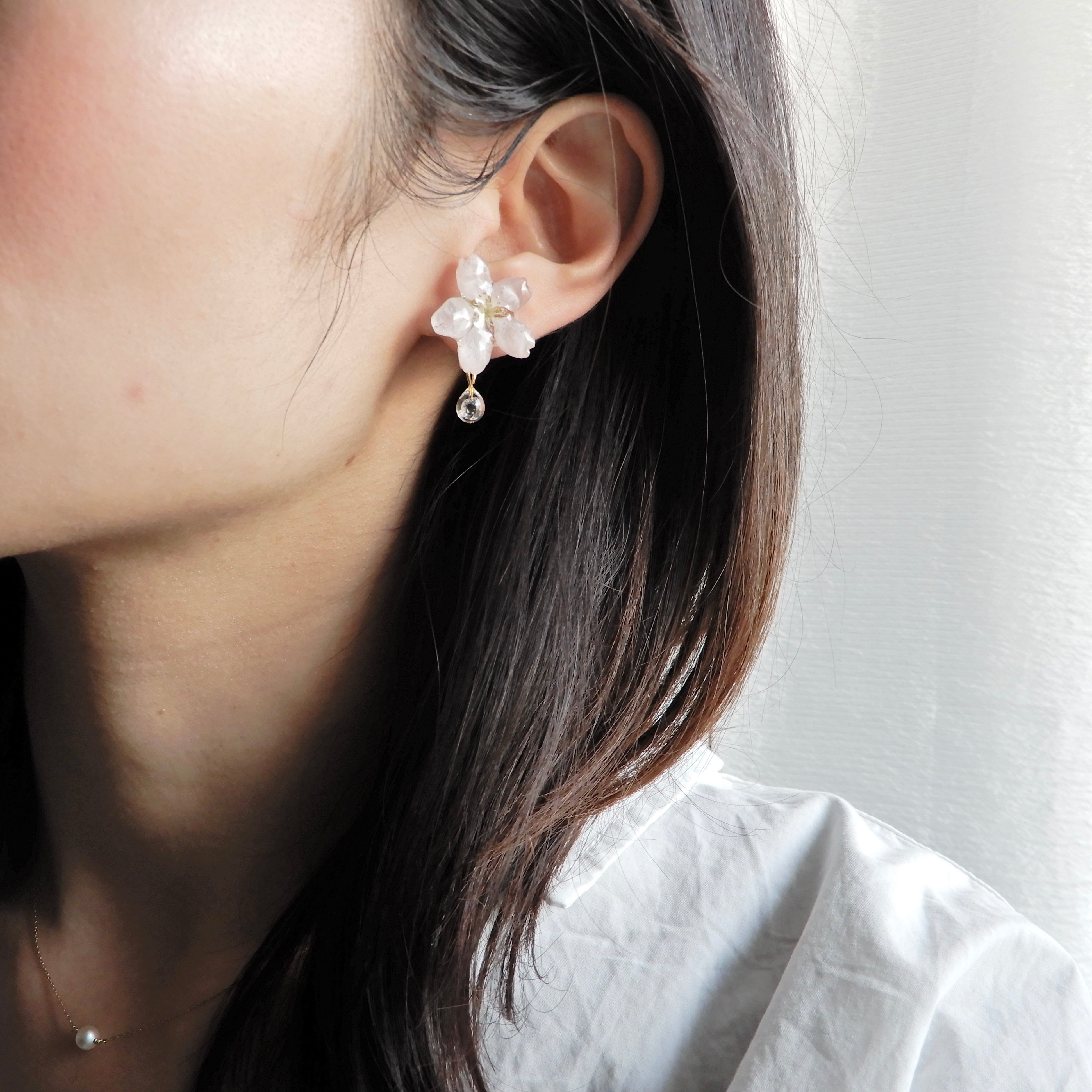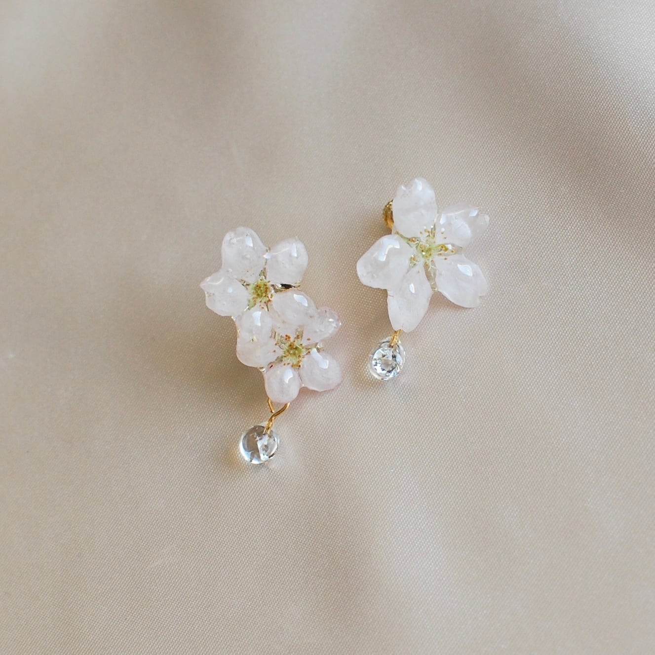 ジルコニアの雫したたる朝露桜✴︎三輪(啓翁桜)〜ピアス・イヤリング