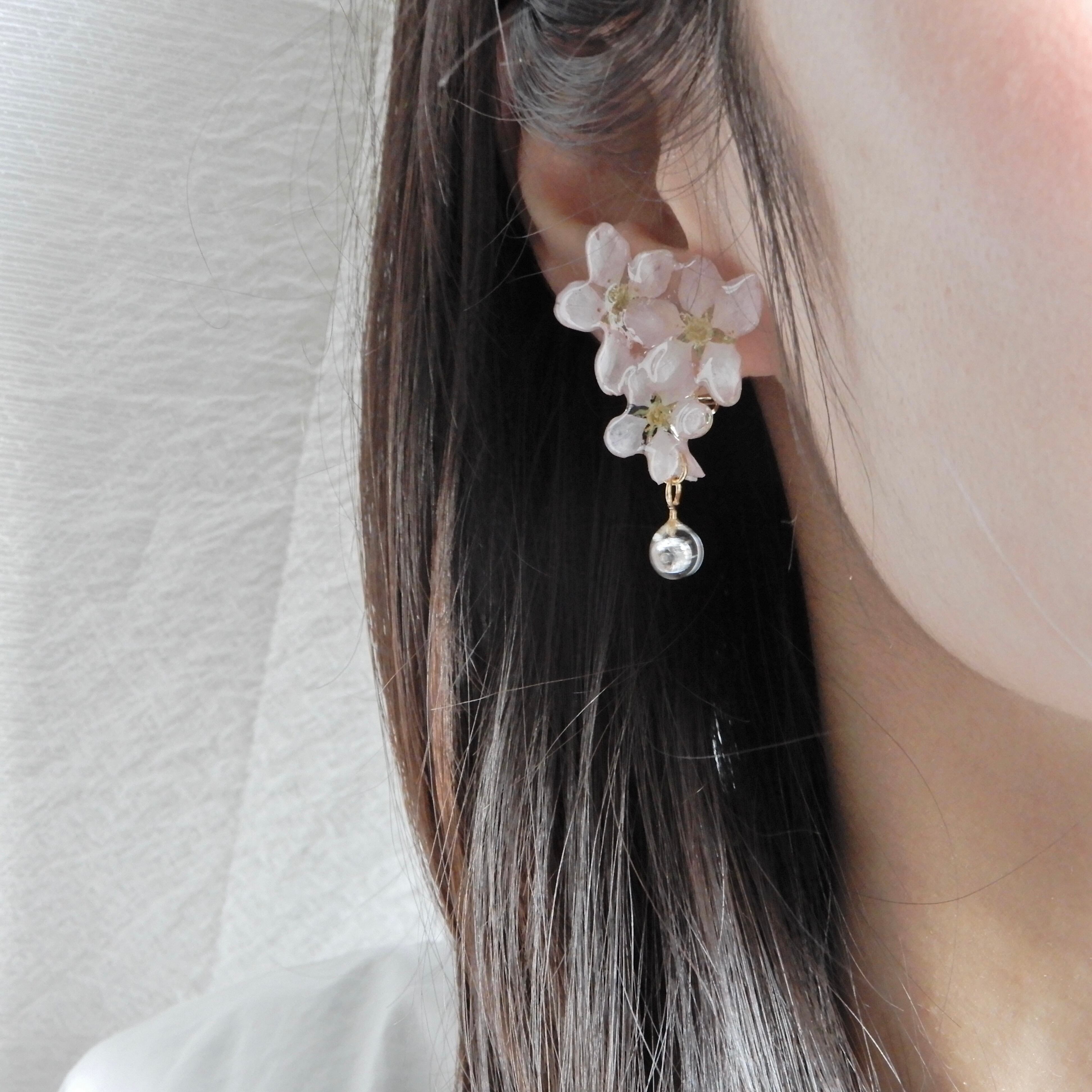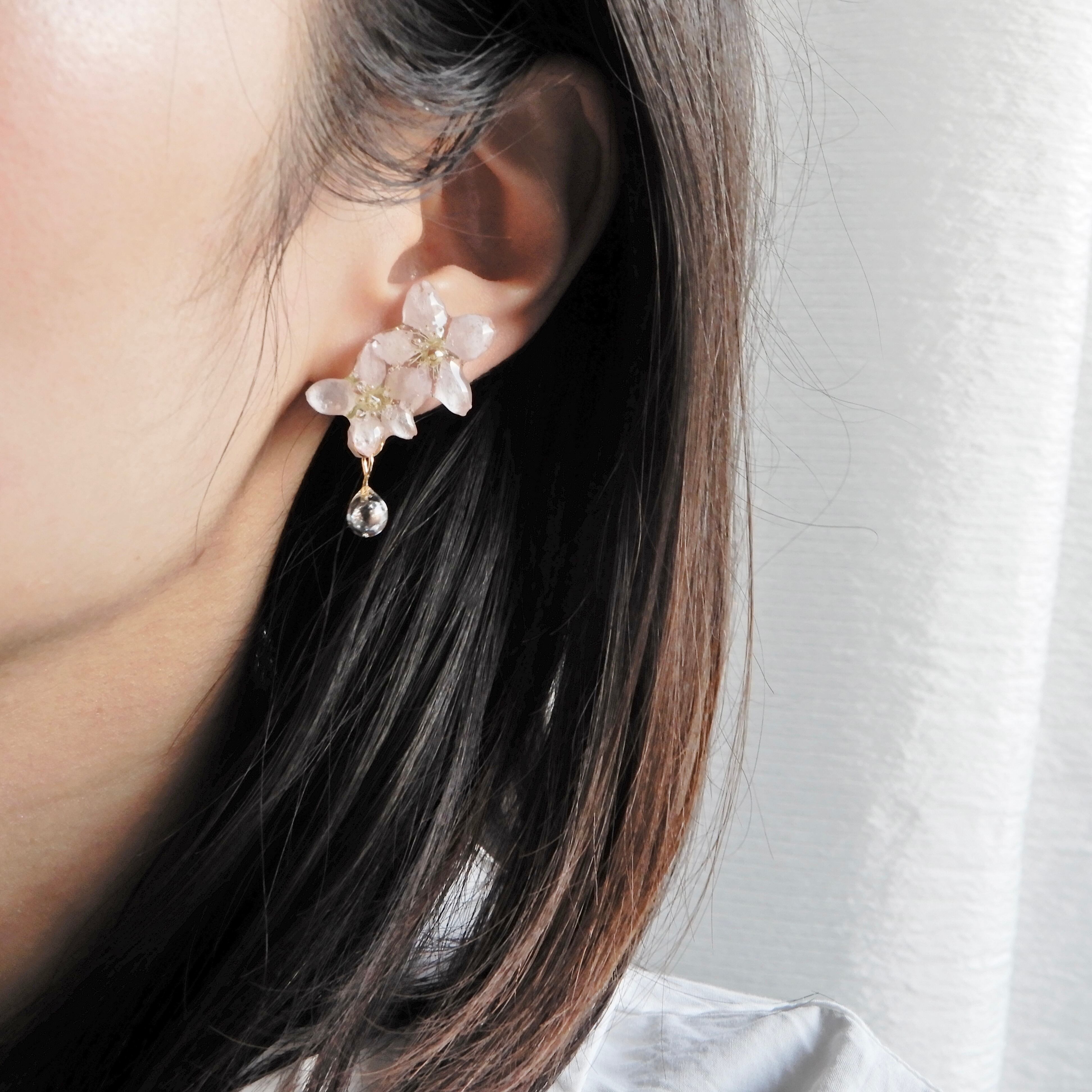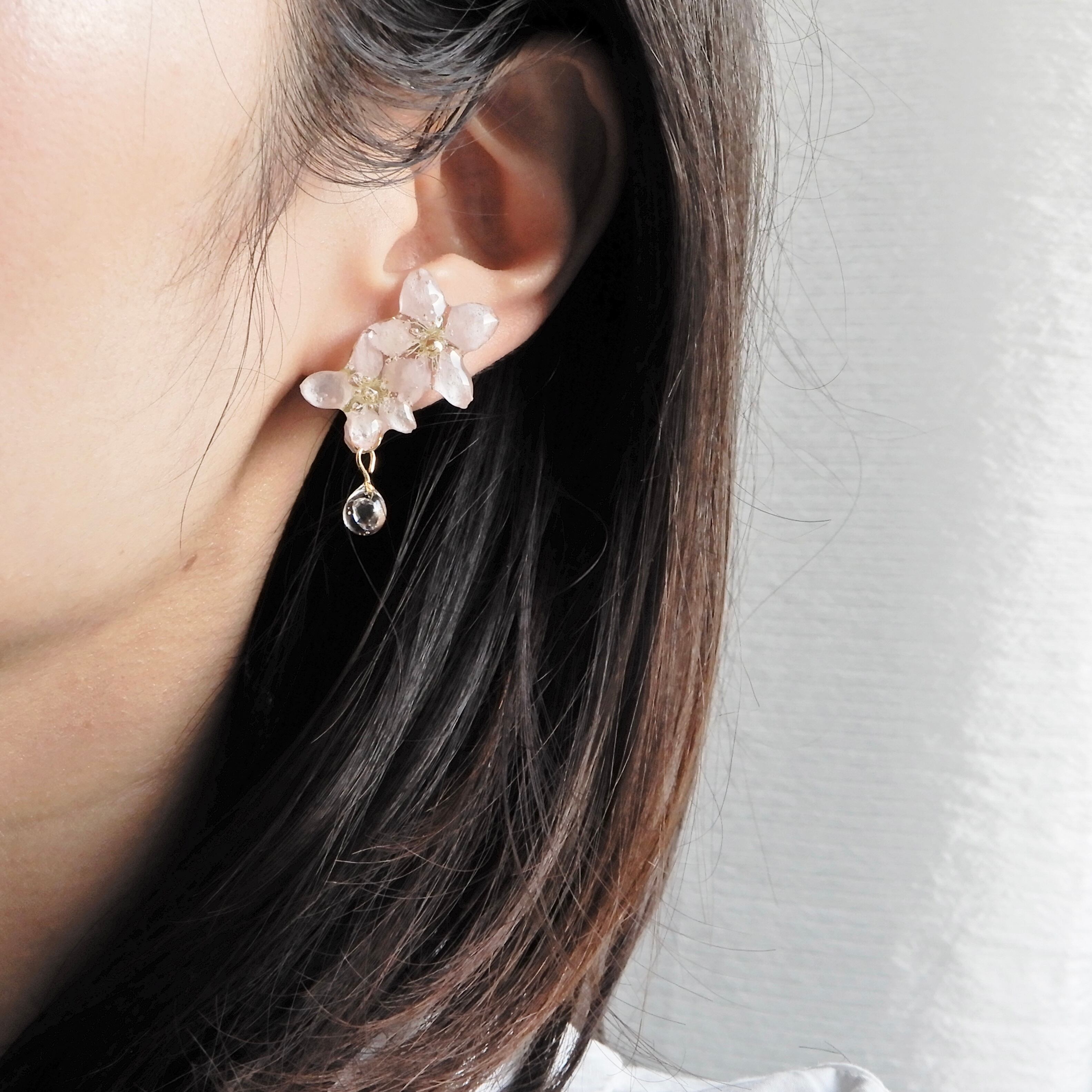 ジルコニアの雫したたる朝露桜✴︎五輪(啓翁桜)〜ピアス・イヤリング
