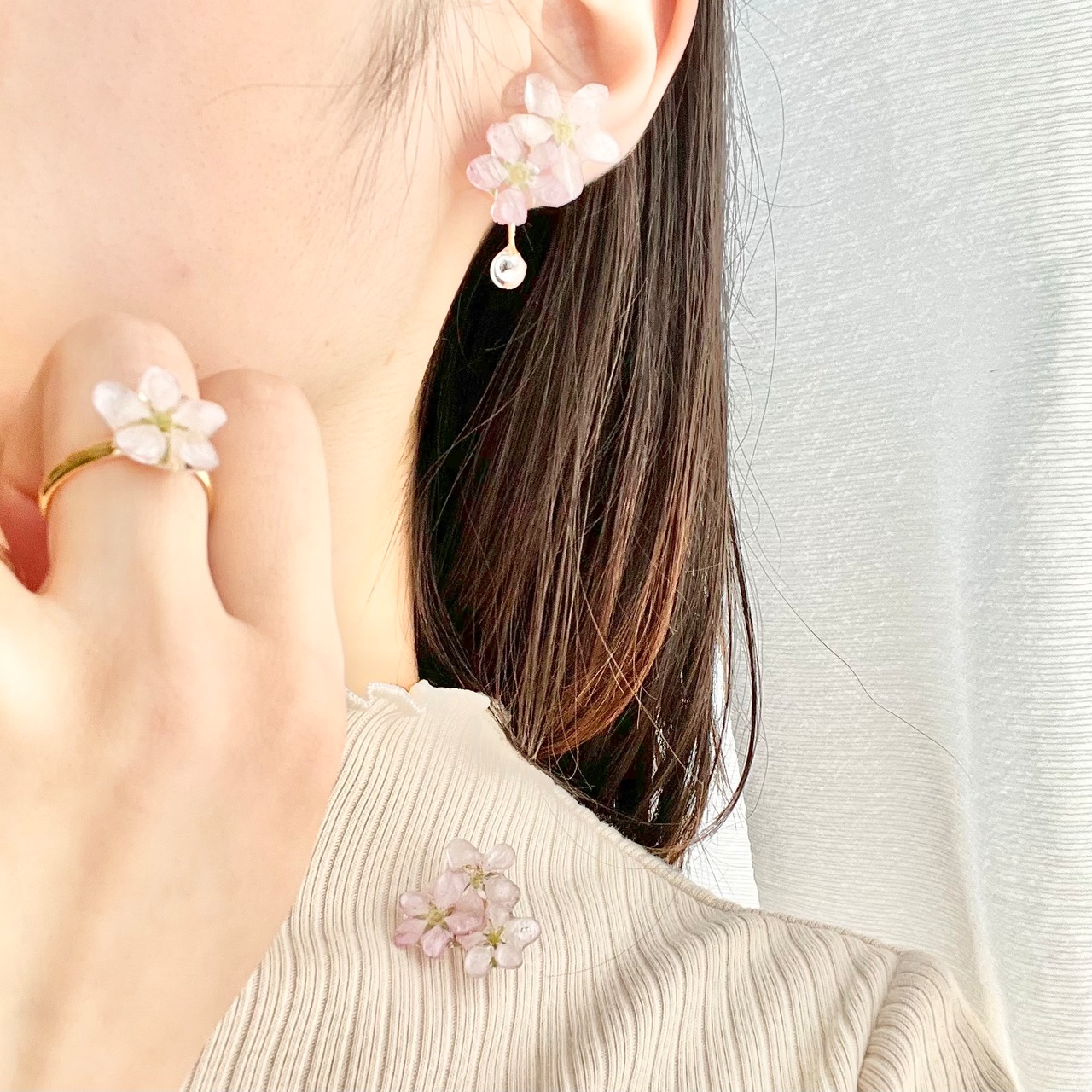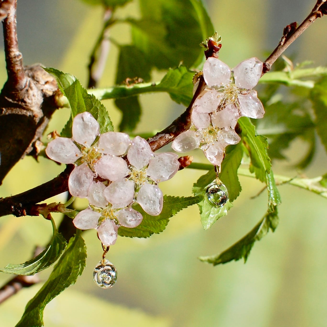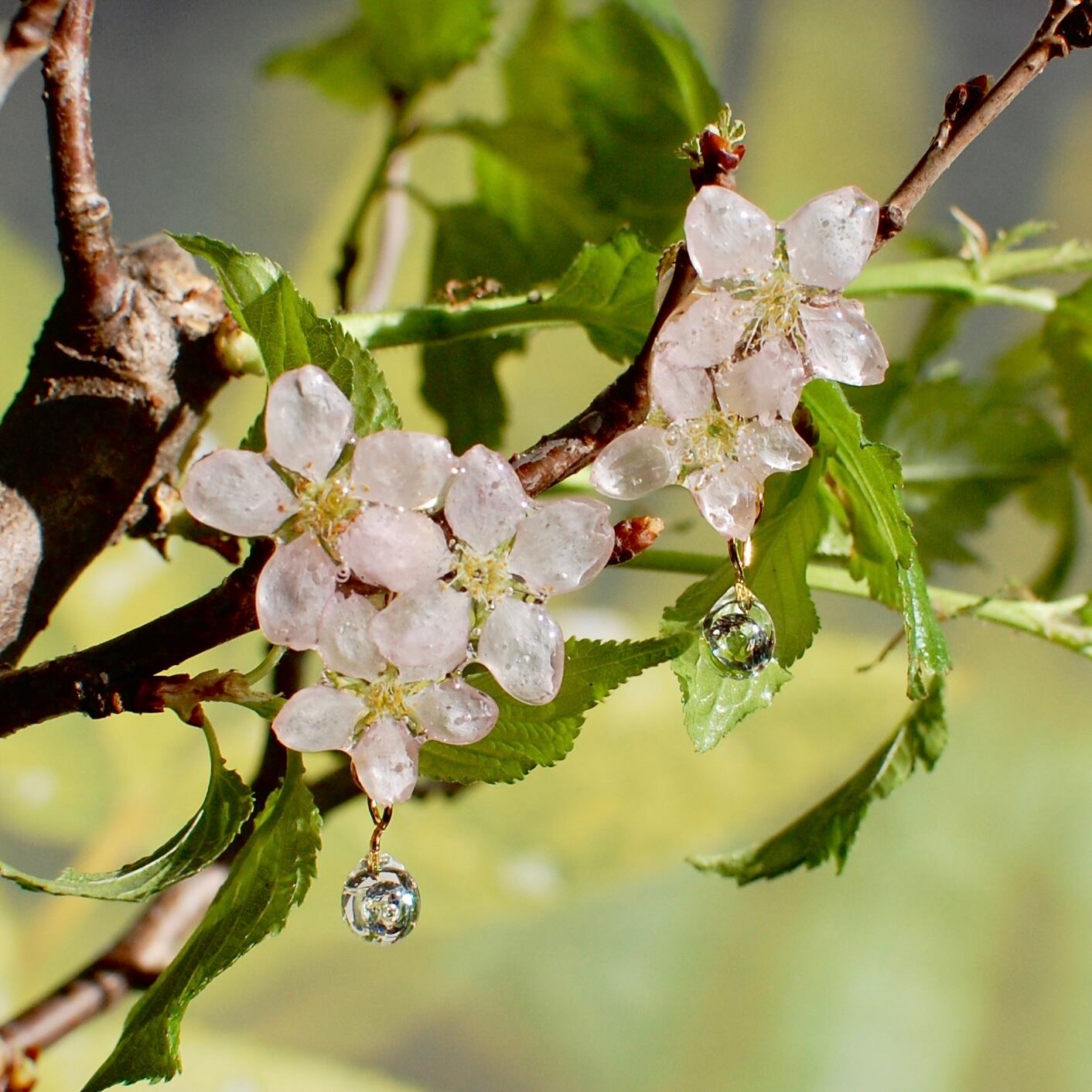 ジルコニアの雫したたる朝露桜✴︎五輪(啓翁桜)〜ピアス・イヤリング