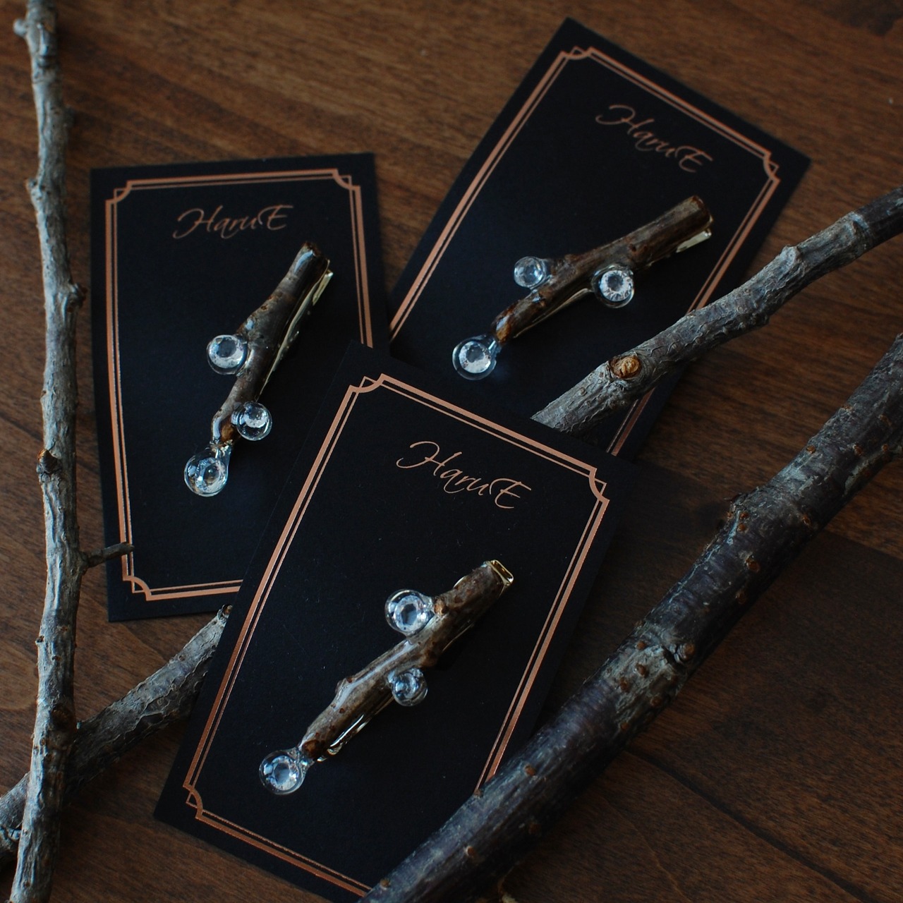 冬の桜枝✴︎ジルコニアの雫煌めく様子〜ヘアクリップ