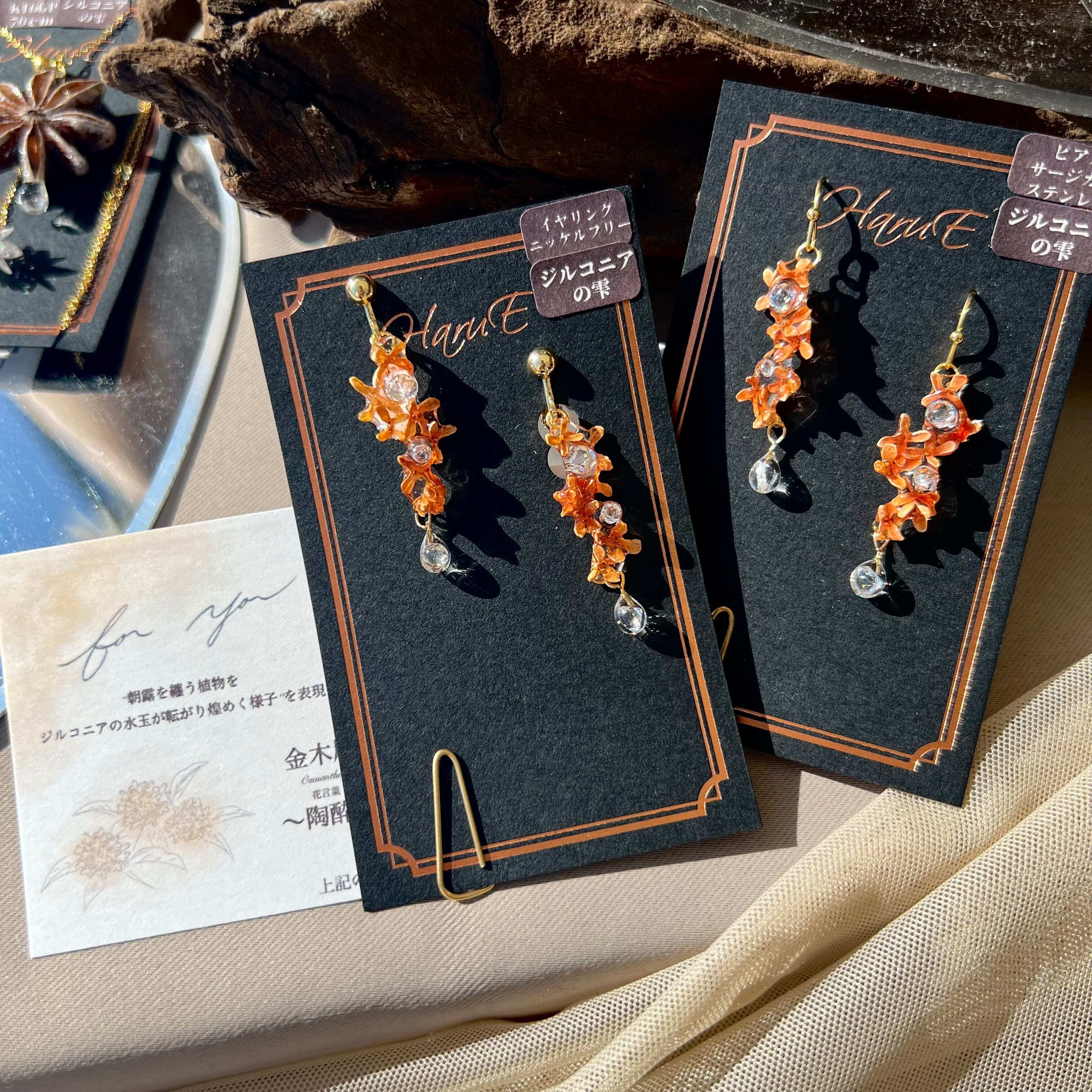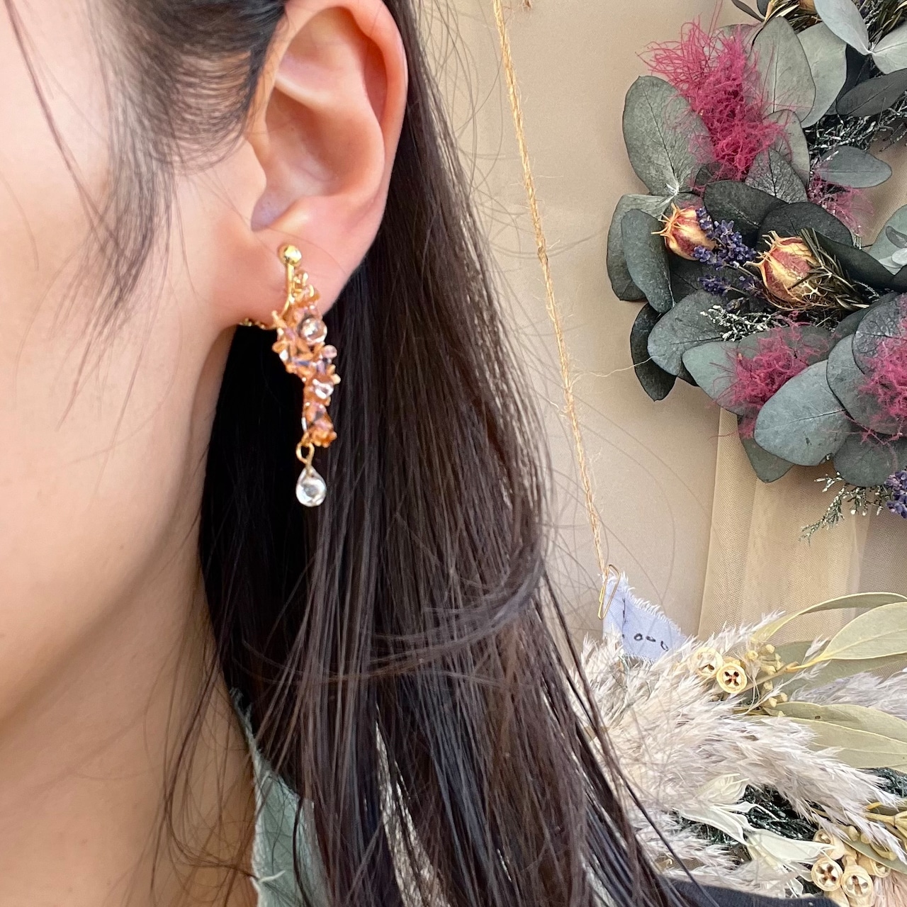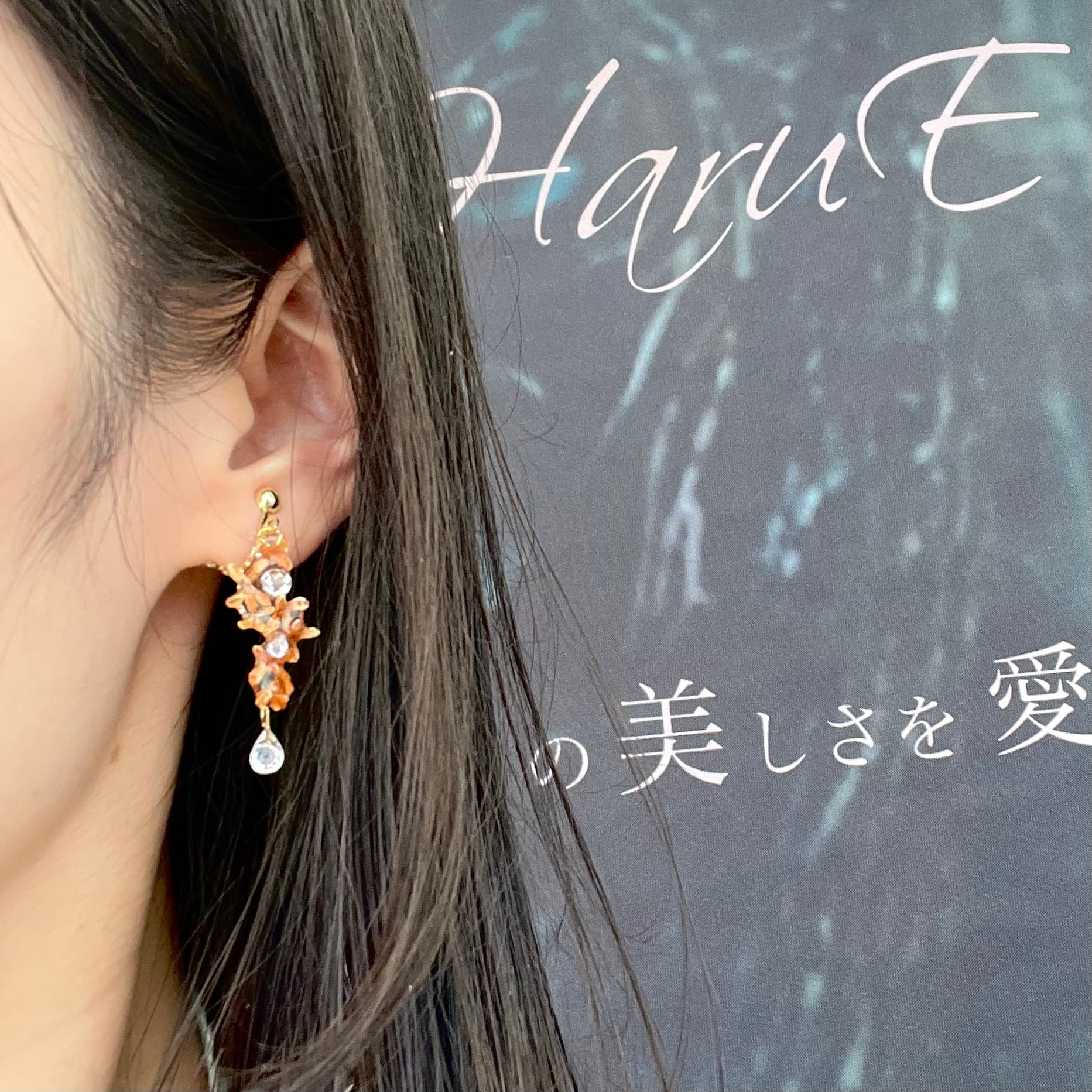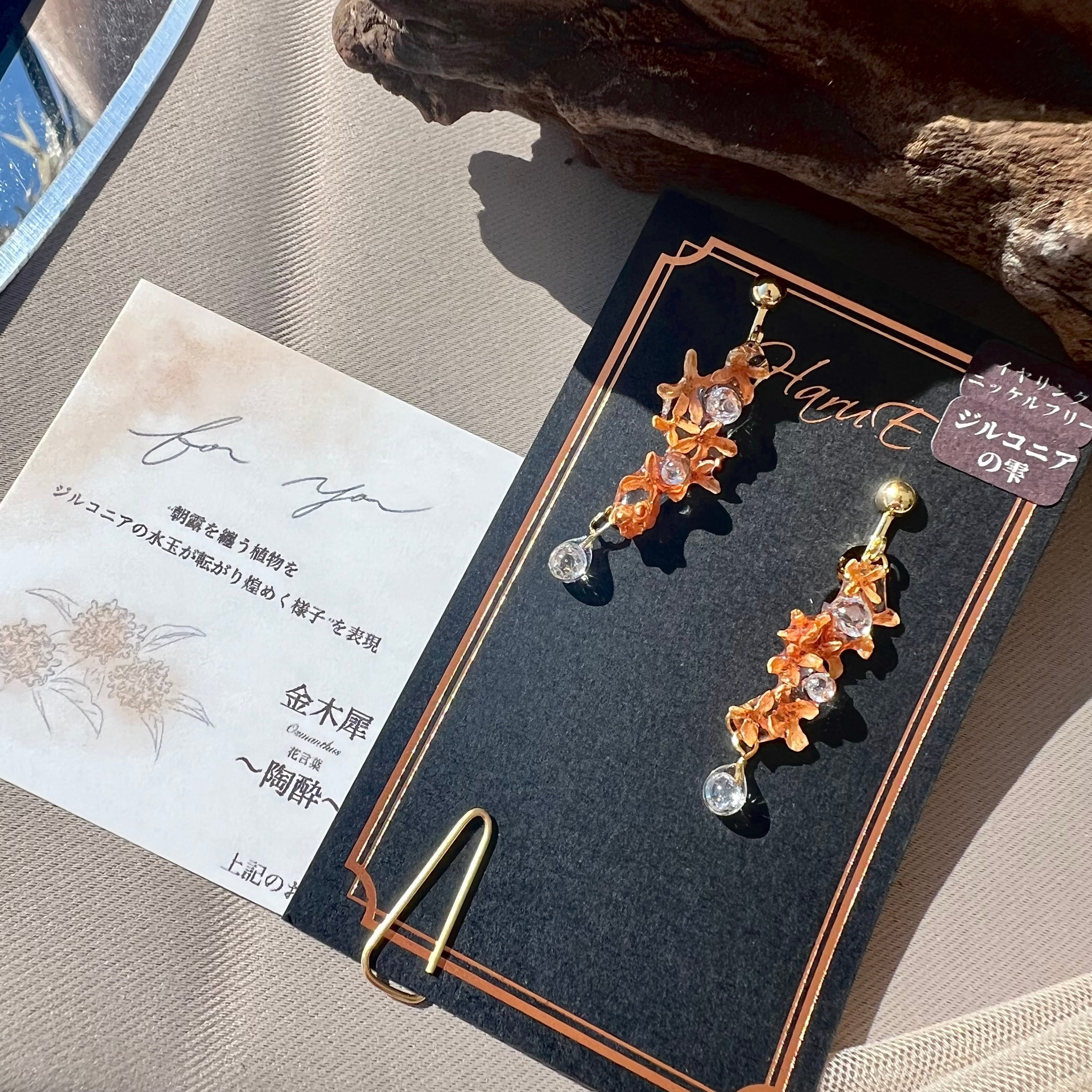 朝露金木犀✴︎ジルコニアの雫煌めく様子〜ピアス・イヤリング