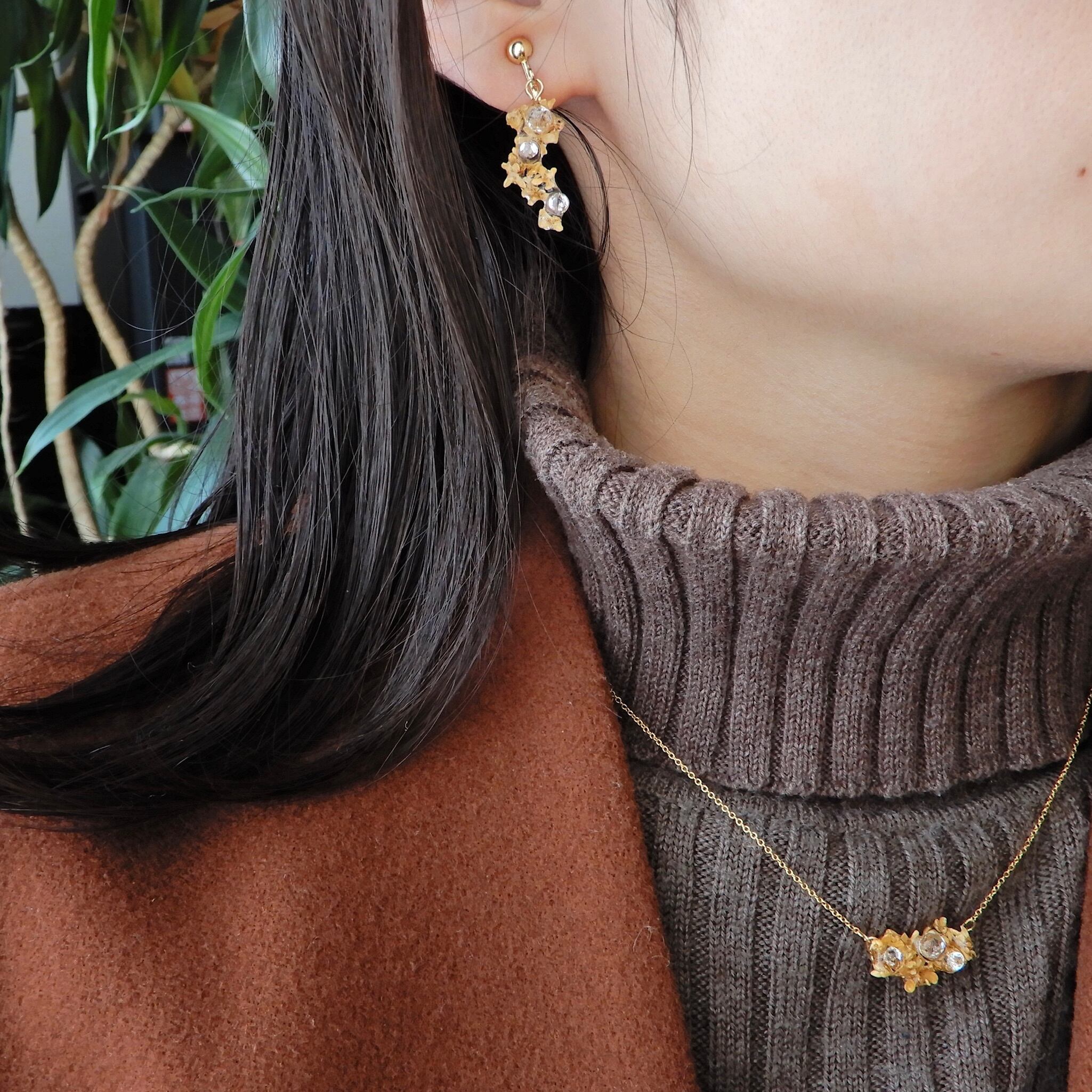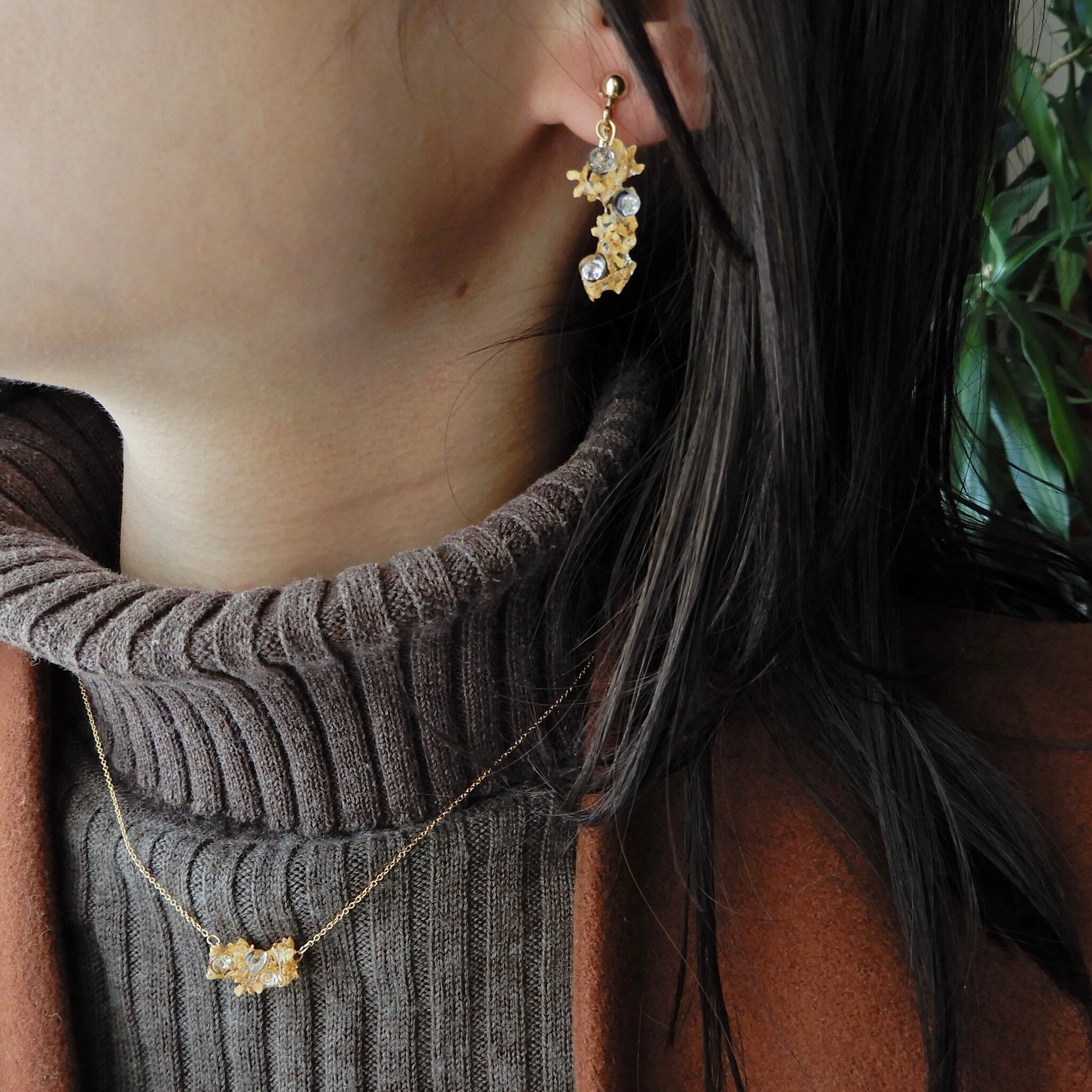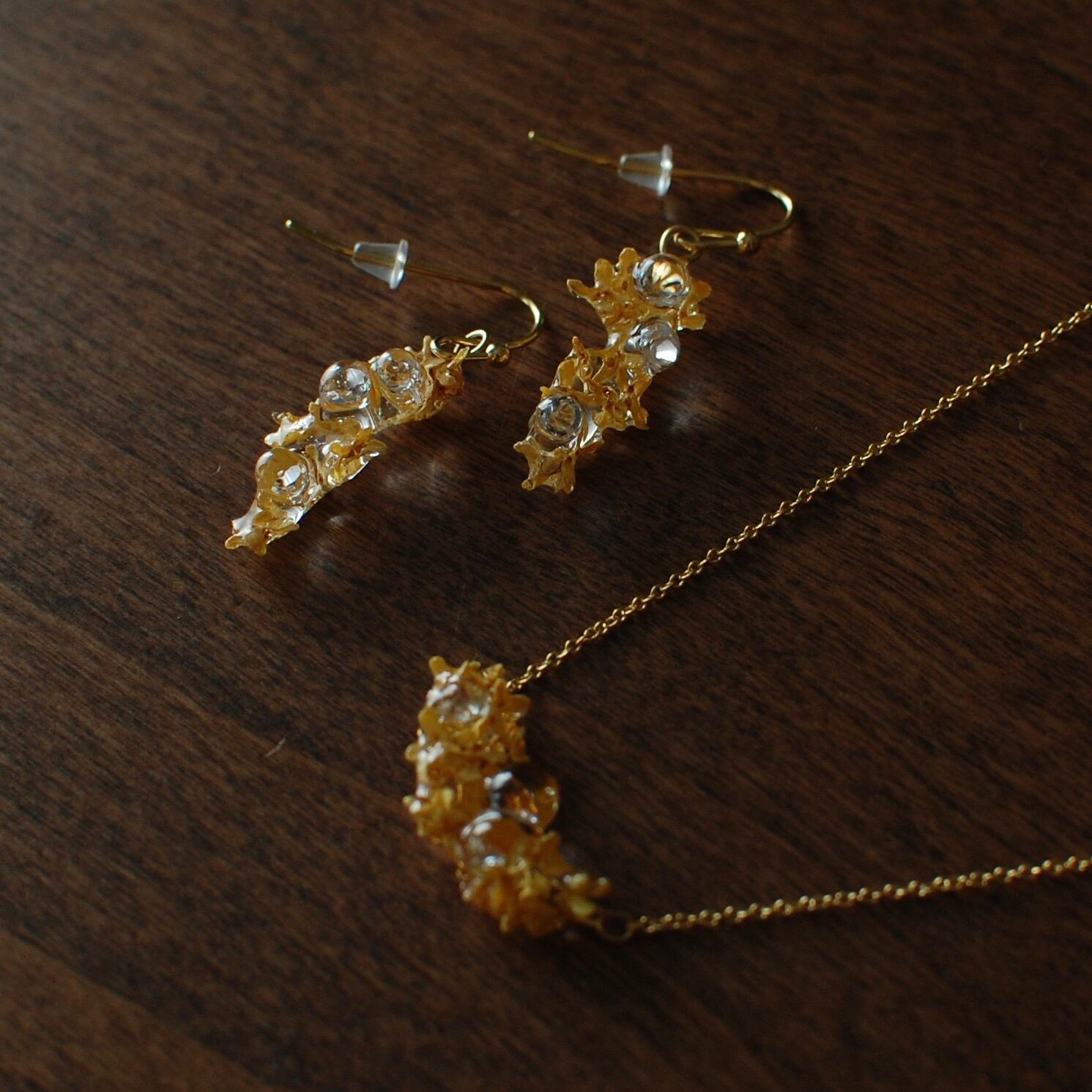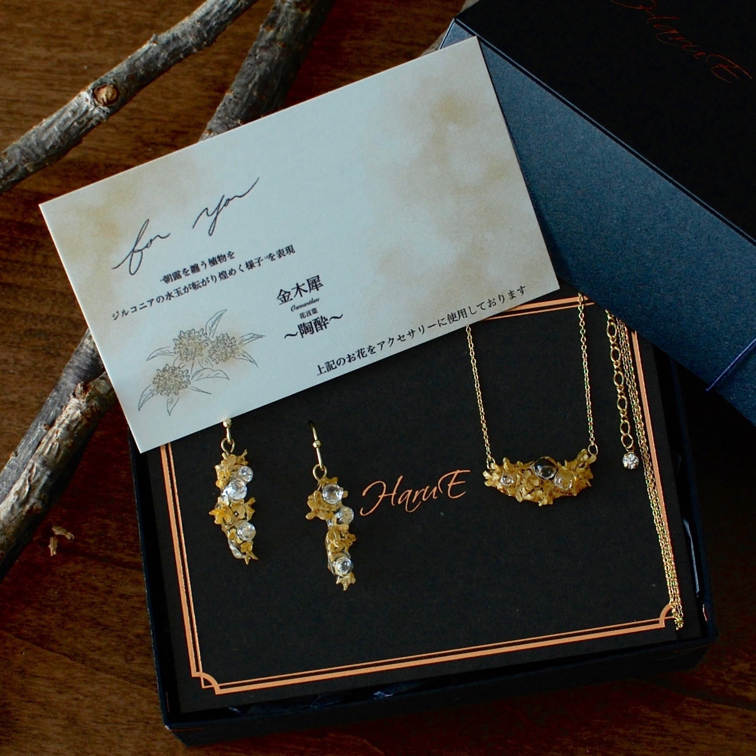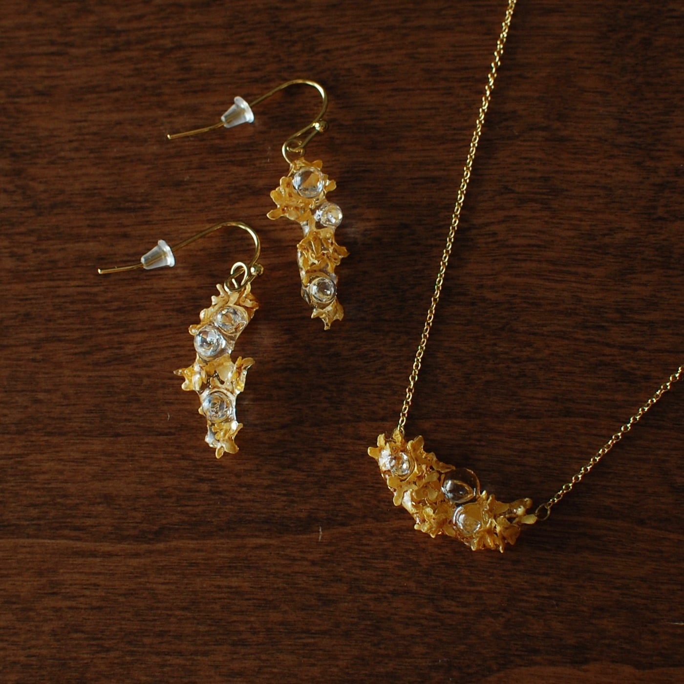 【セット・コフレ】朝露金木犀✴︎ジルコニアの雫煌めく様子〜ネックレス&ピアス・イヤリング