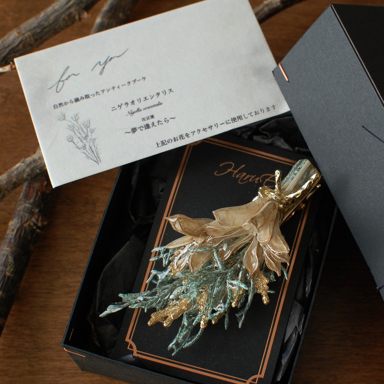 ニゲラオリエンタリスとブルーアイスのアンティークブーケ 〜ヘアアクセサリー〜