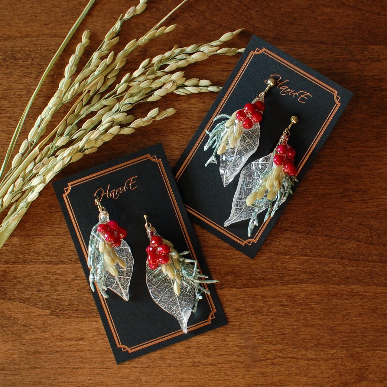稲穂ブーケ・赤〜ピアス・イヤリング