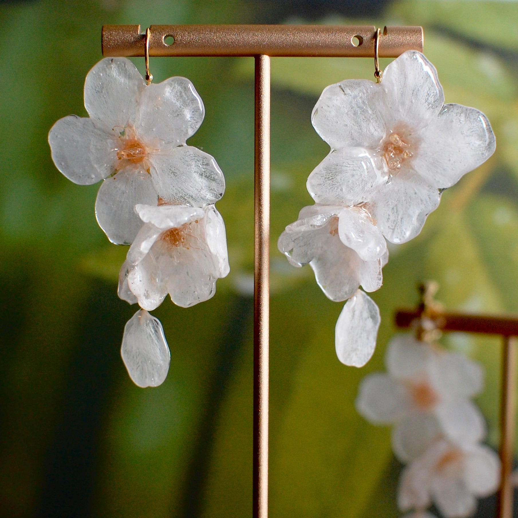 柔らかい本物の花びらを樹脂でコーティングし、