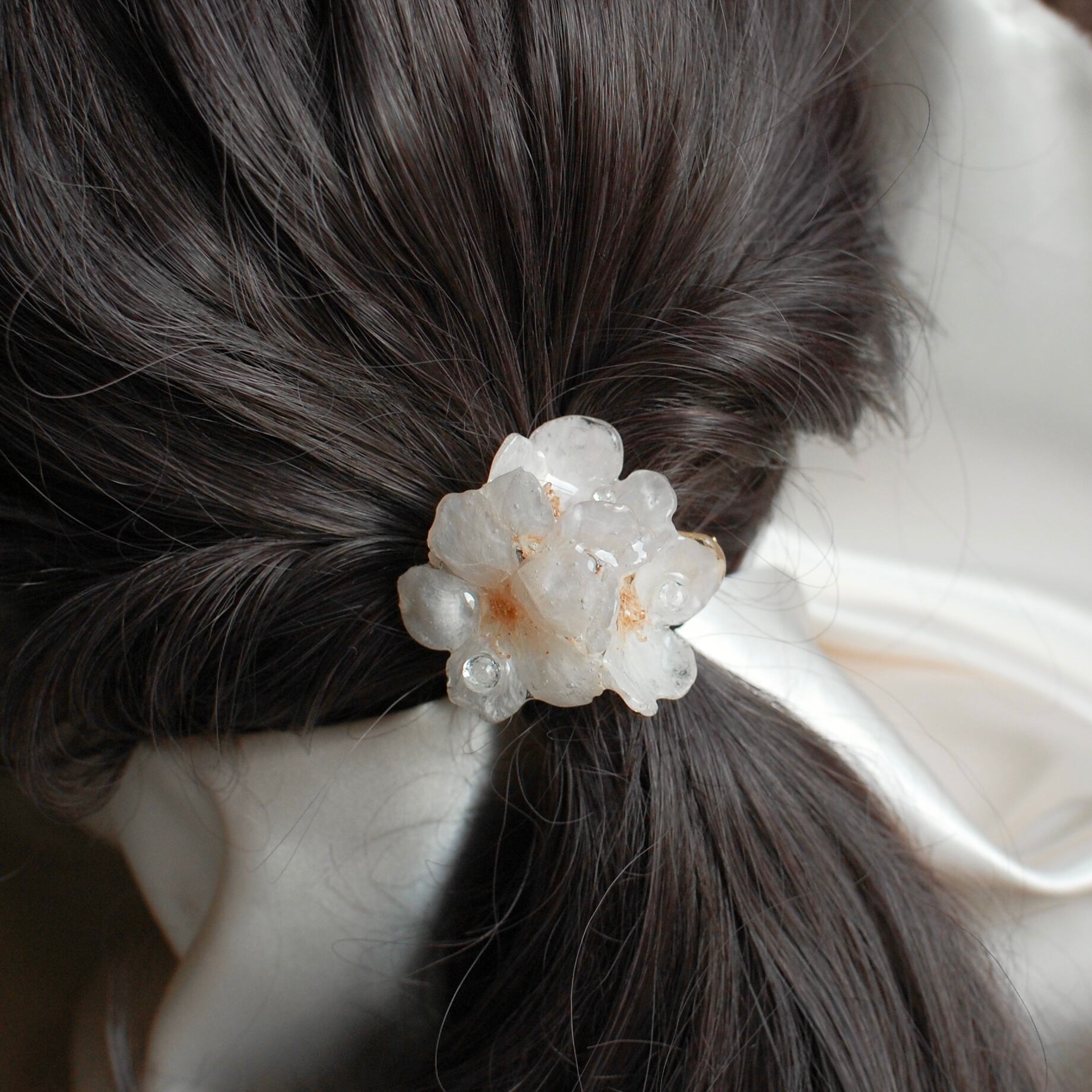ジルコニアの水玉煌めく朝露ソメイヨシノ・桜(本物)〜ヘアクリップ