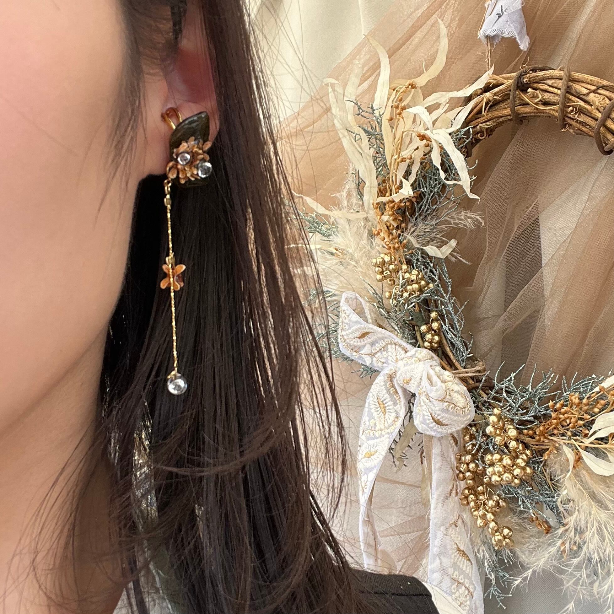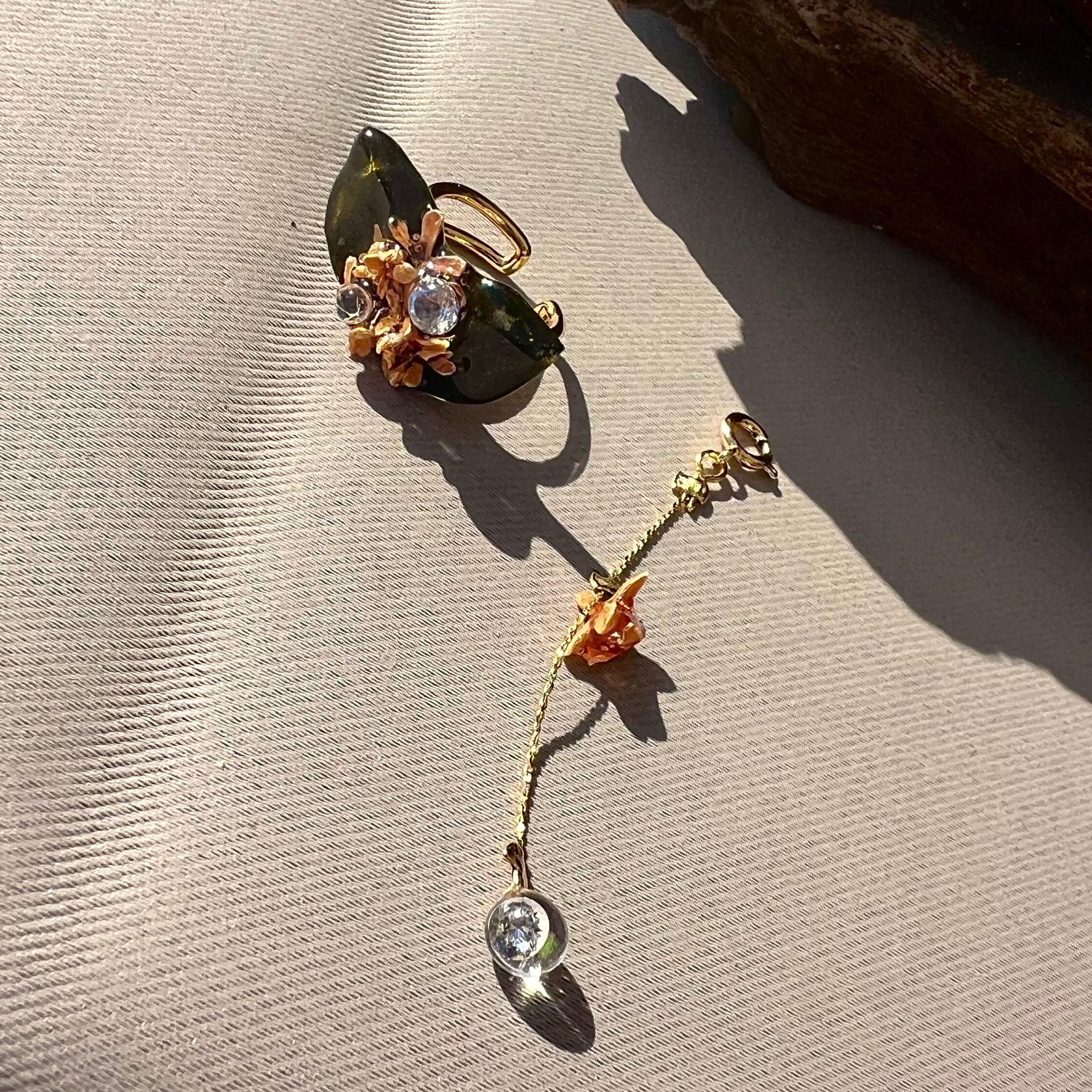 【3way】朝露金木犀✴︎ジルコニアの雫煌めく様子〜イヤーカフ兼リング