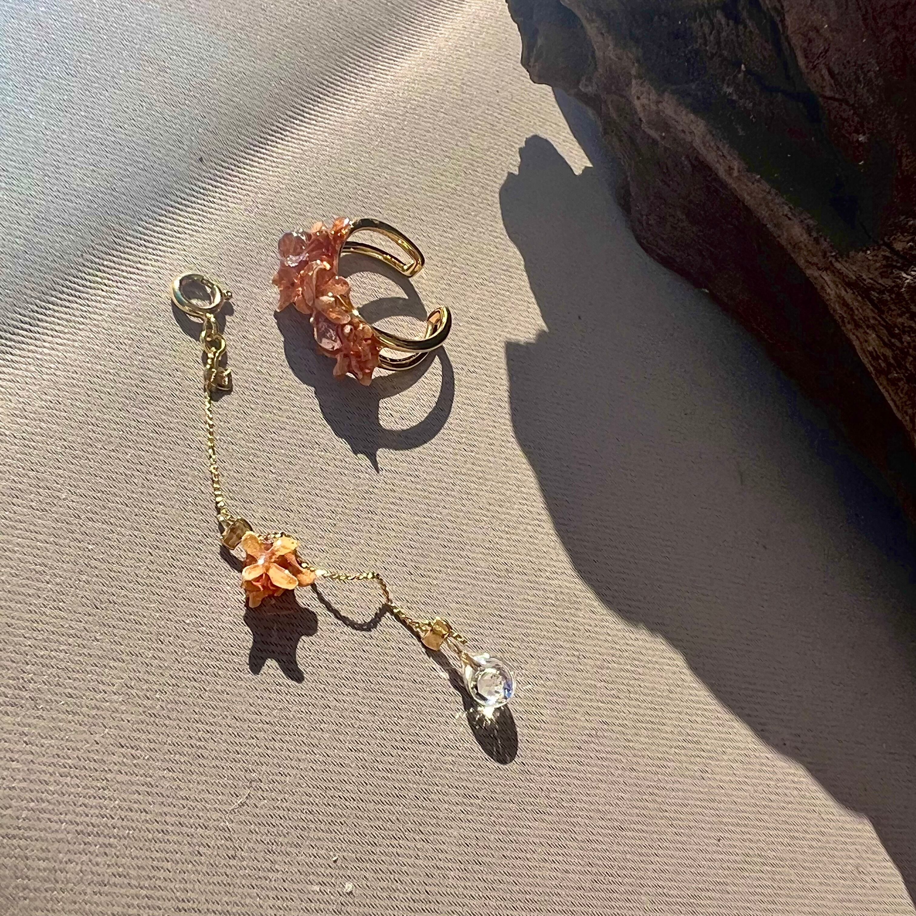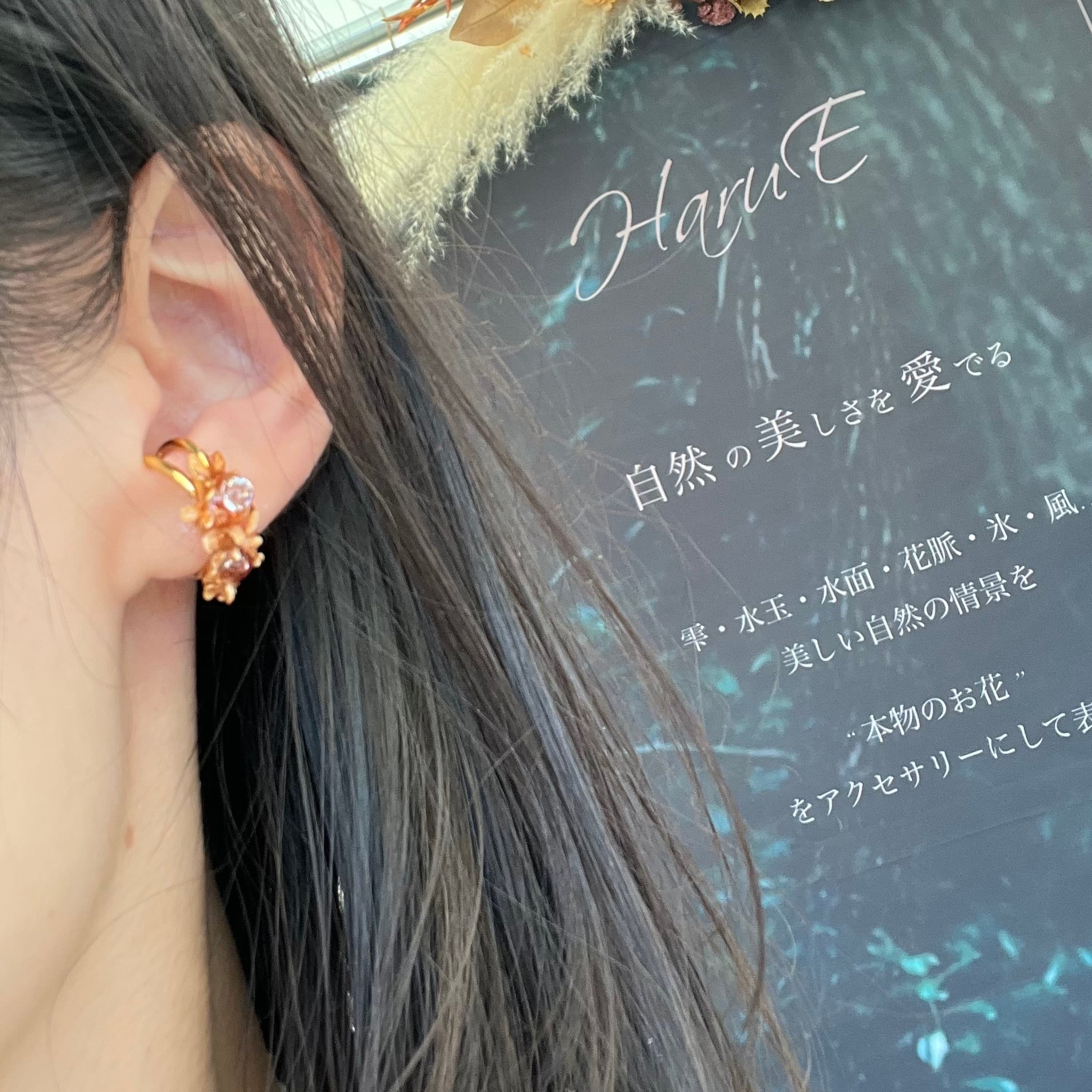【3way】朝露金木犀✴︎ジルコニアの雫煌めく様子〜イヤーカフ兼リング
