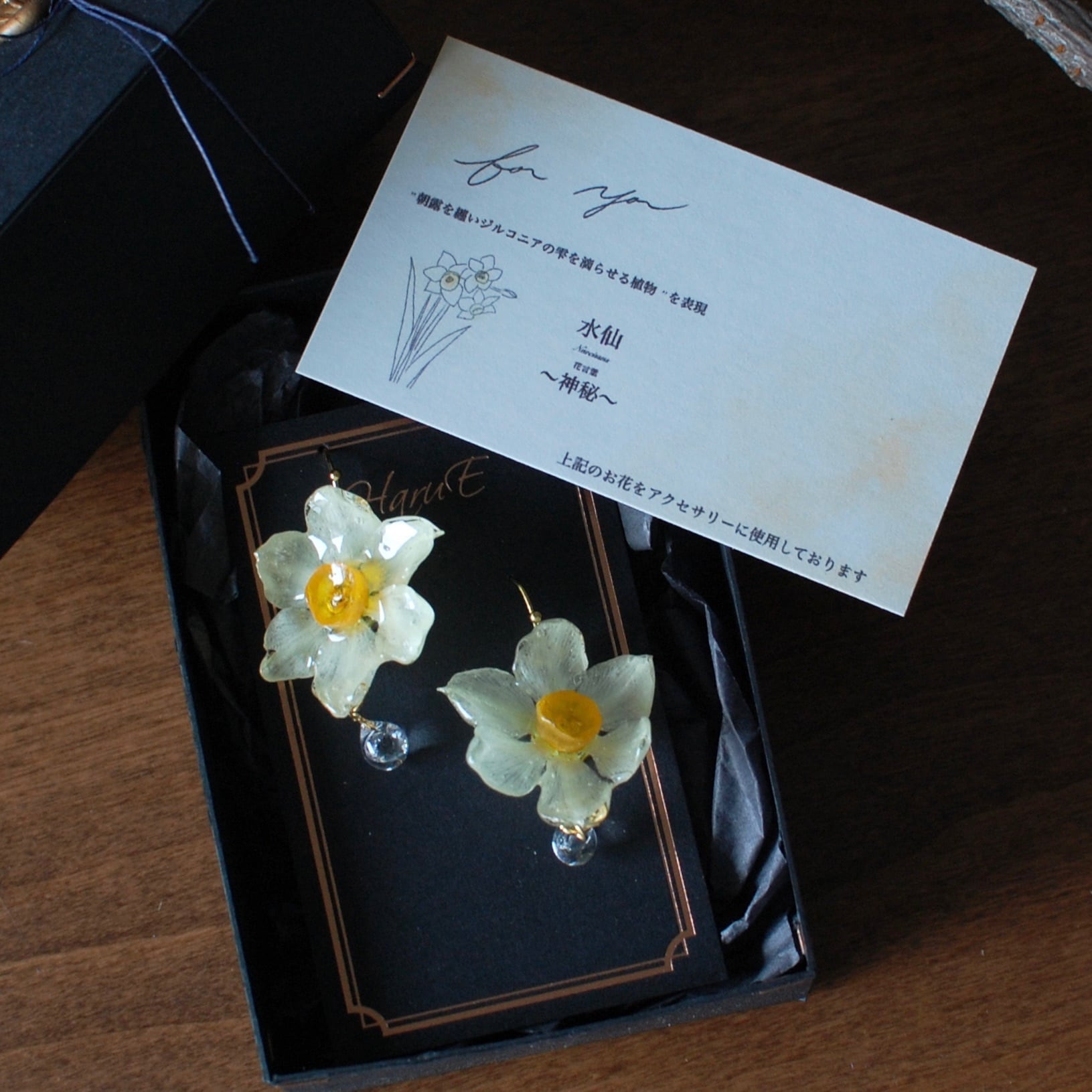 朝露の雫煌めく水仙✴︎ジルコニア〜ピアス・イヤリング